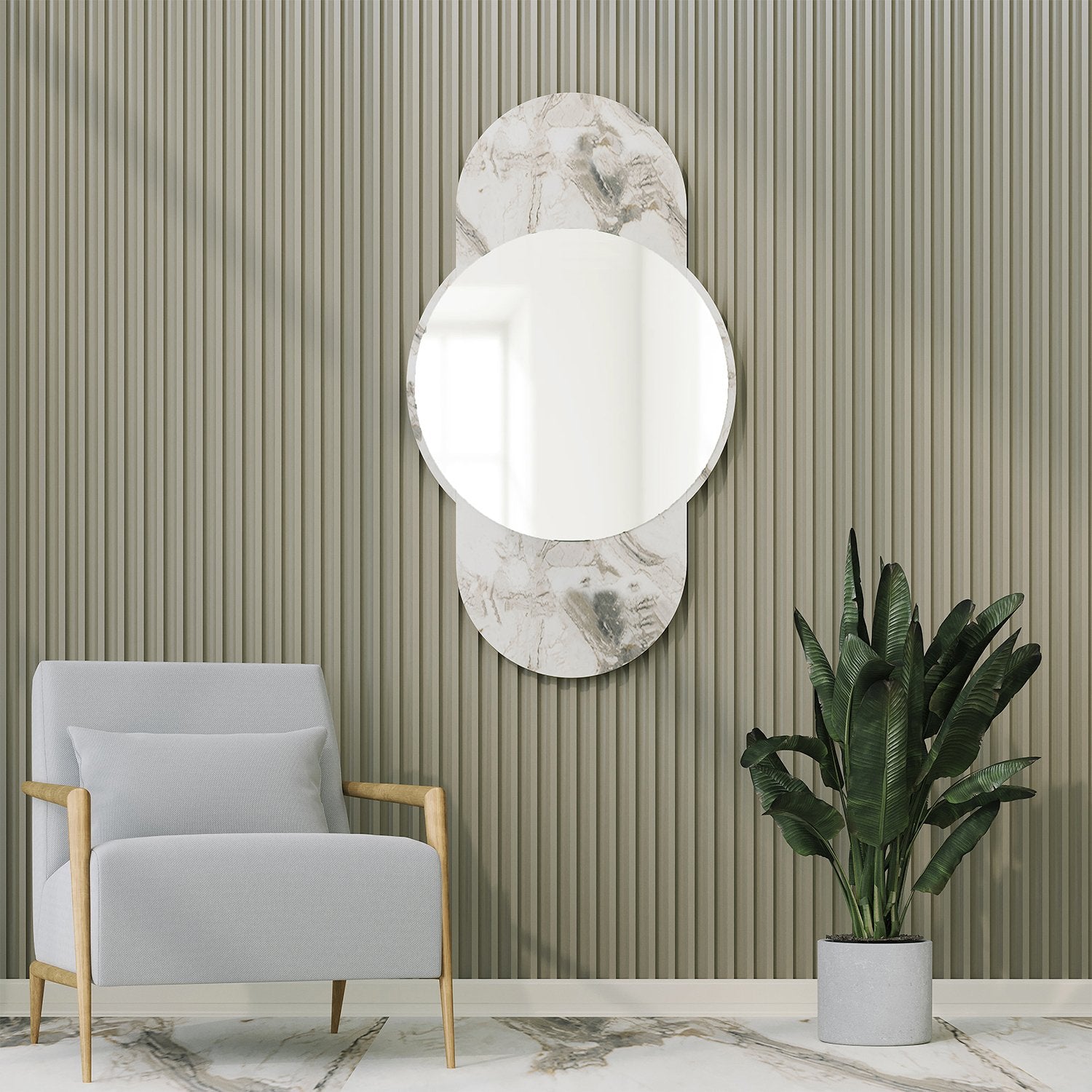 Espelho de parede elegante em mármore, 60 x 106 cm, 100% MDF, 18 mm de espessura, design ecológico Flotal-E | Perfeito para decoração moderna