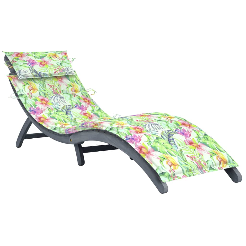 Espreguiçadeira com almofadão madeira de acácia maciça cinzento