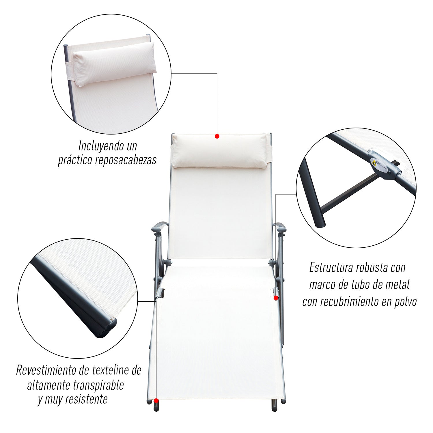 Desfrute do seu tempo ao ar livre com a Espreguiçadeira Dobrável de Jardim. Seu design elegante e moderno em cor creme branco combina perfeitamente com qualquer mobiliário de exterior.