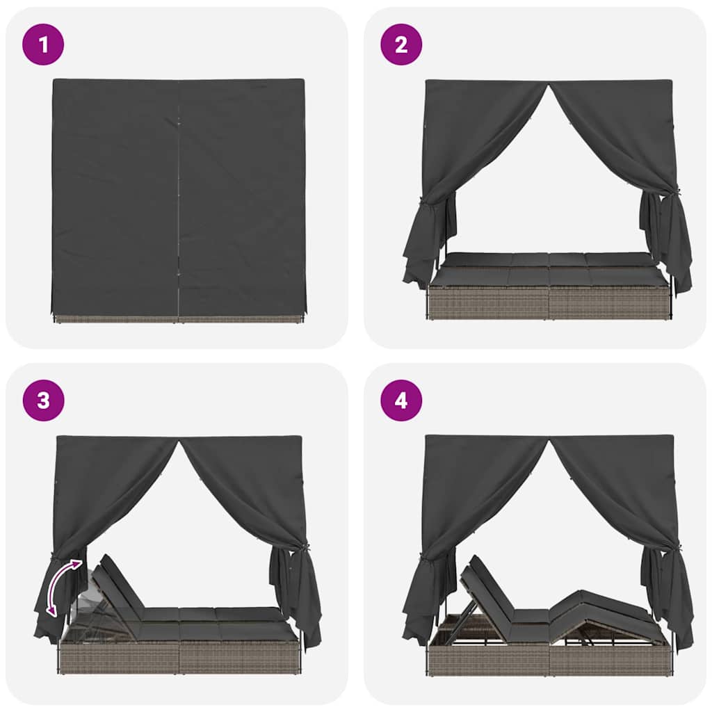 Conheça a incrível Cama de Sol Dupla com Teto e Cortinas—o máximo em conforto ao ar livre. Imagine-se pegando sol numa linda manhã ou relaxando em uma noite fresquinha, tudo isso enquanto fica confortável e protegido nessa espreguiçadeira sensacional. Seu design sofisticado e formato flexível tornam-na uma escolha top pra jardins ou terraços, garantindo uma experiência ao ar livre incrível.