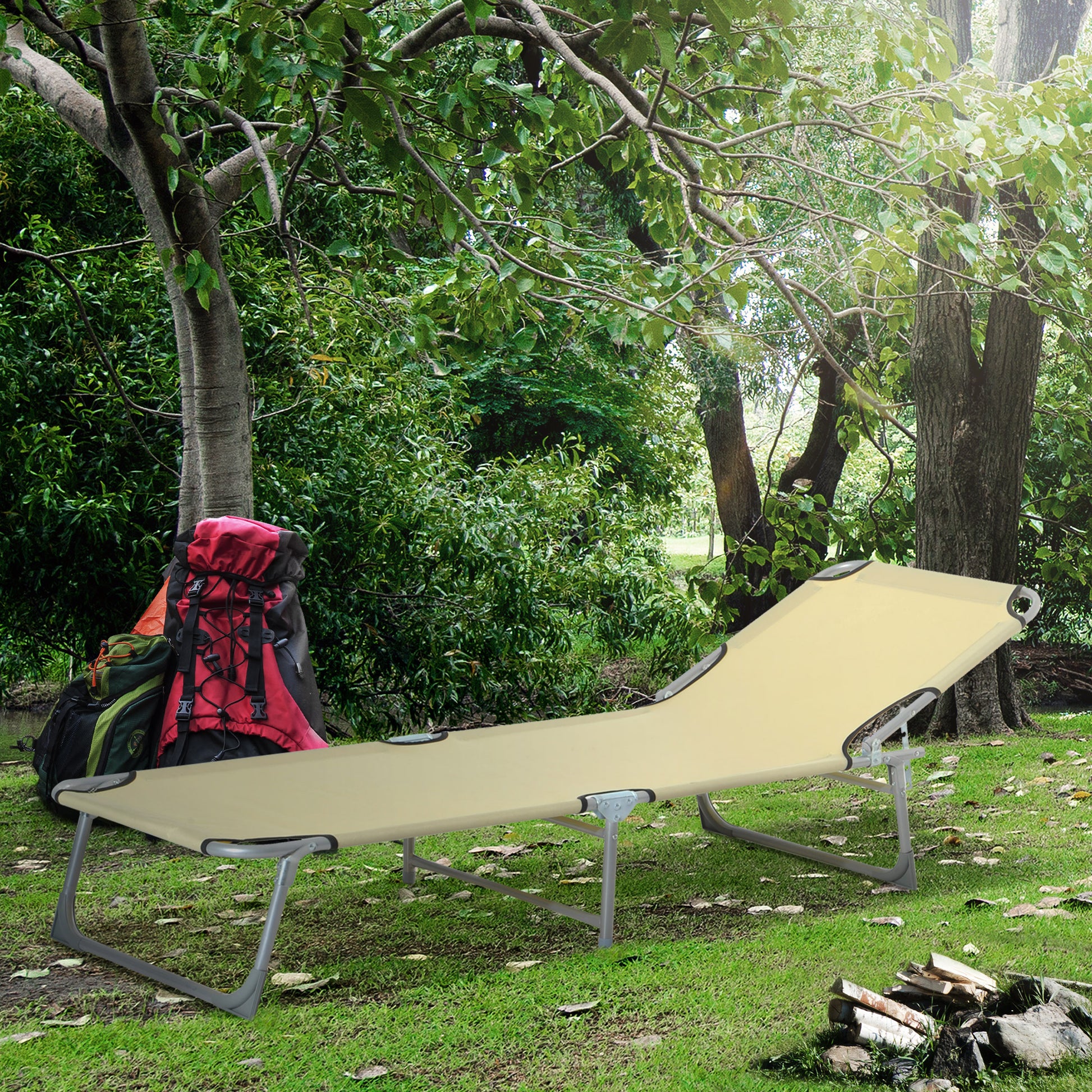 Espreguiçadeira Portátil Reclinável em 4 Posições Bege 187x58x28 cm