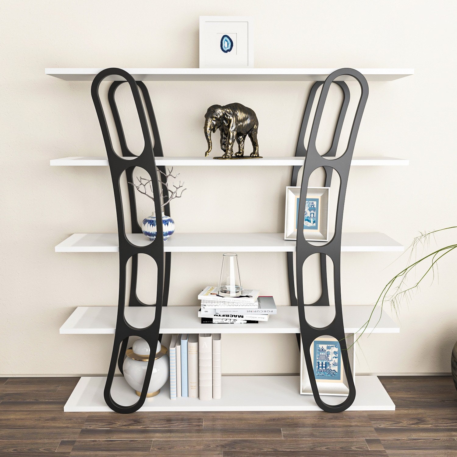 Estante estilosa, 120 x 120 x 25 cm, branca e preta | Painel de partículas 100% revestido em melamina, 18 mm de espessura | Perfeita para decoração moderna de casa e escritório