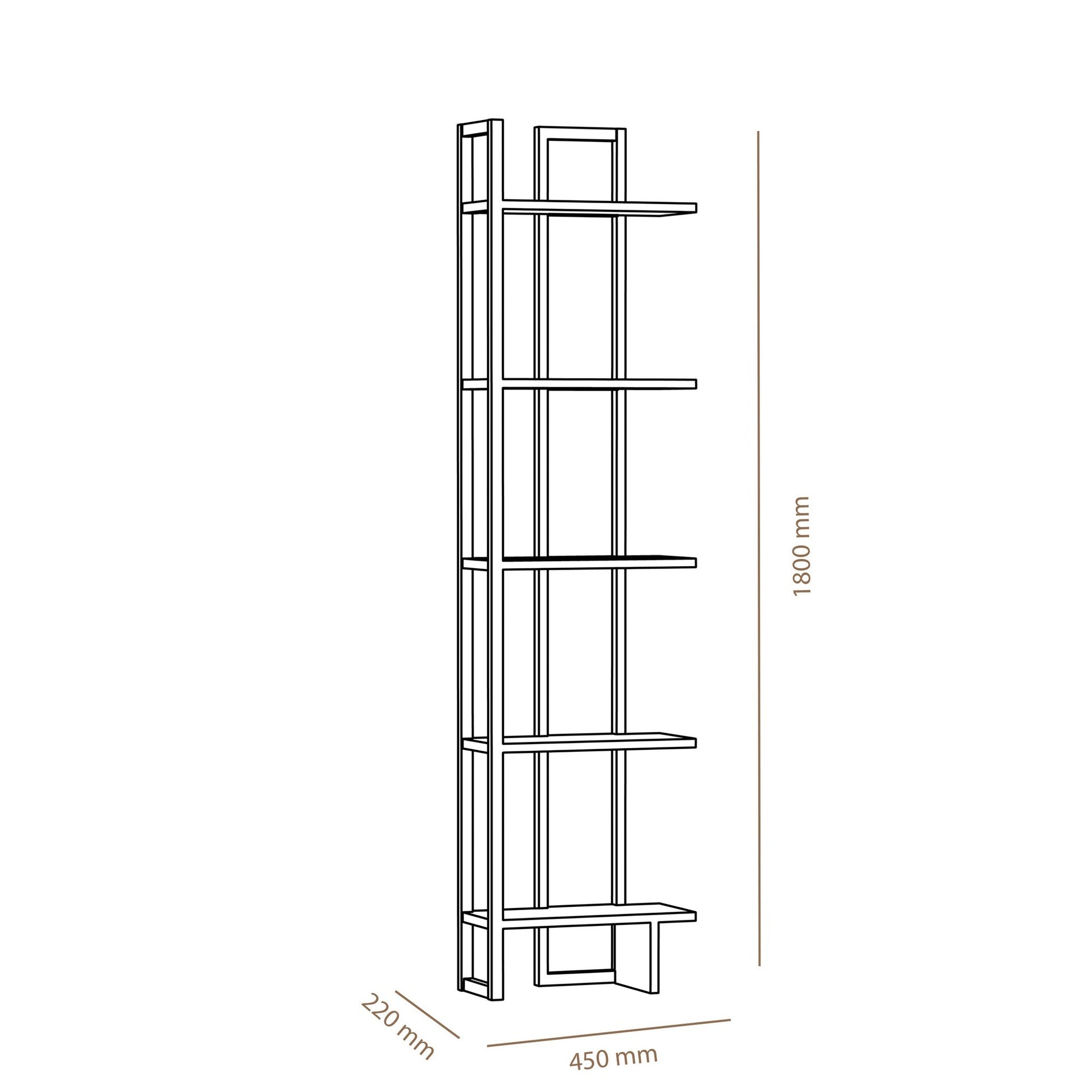 - Tamanho da estante: Largura: 45 cm, Altura: 180 cm, Profundidade: 22 cm