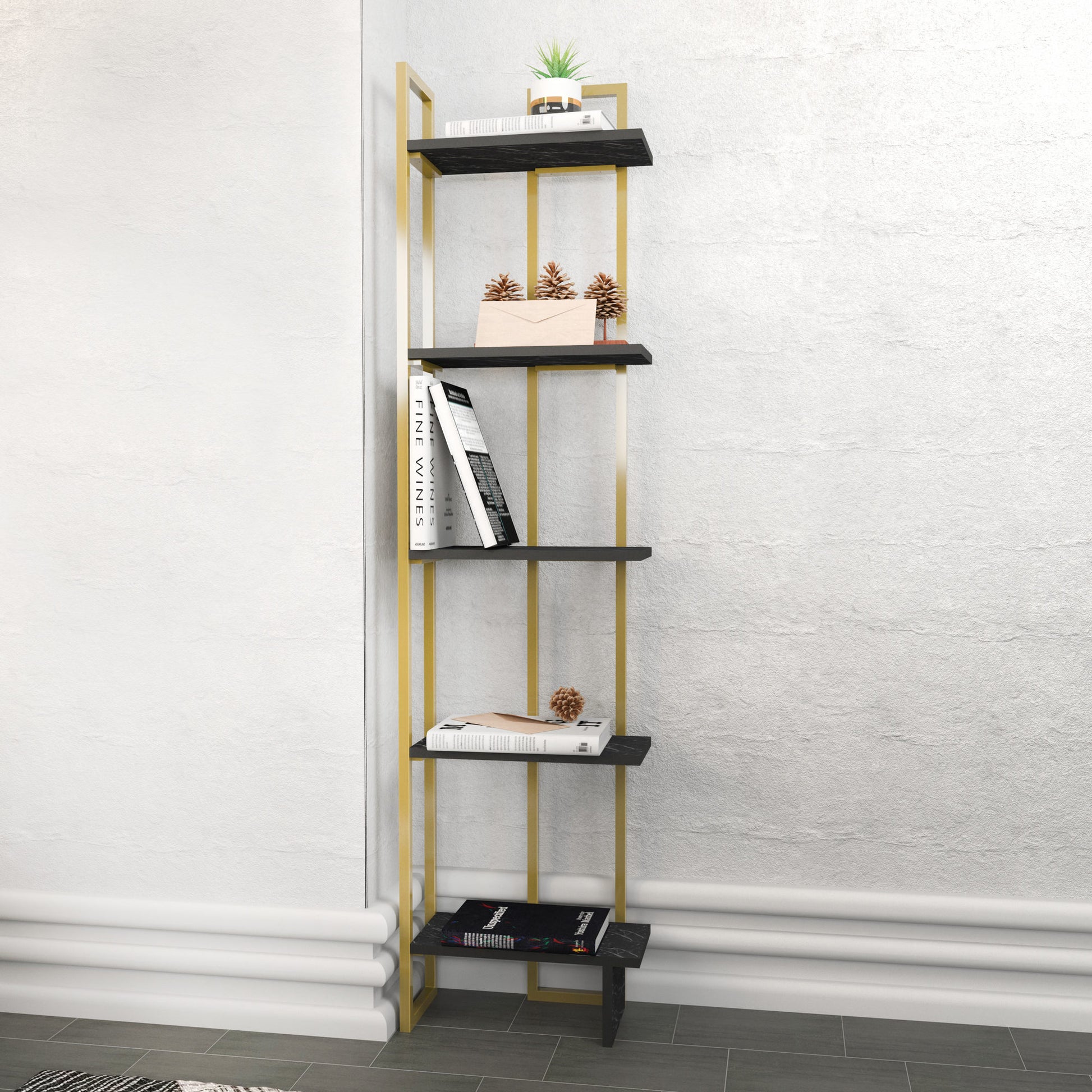 Estante Moderna Glamour, Preta e Dourada, 180 cm de Altura | Painel de Partículas 100% Revestido em Melamina, 18 mm de Espessura, Estrutura de Metal | Armazenamento Elegante para Casa e Escritório