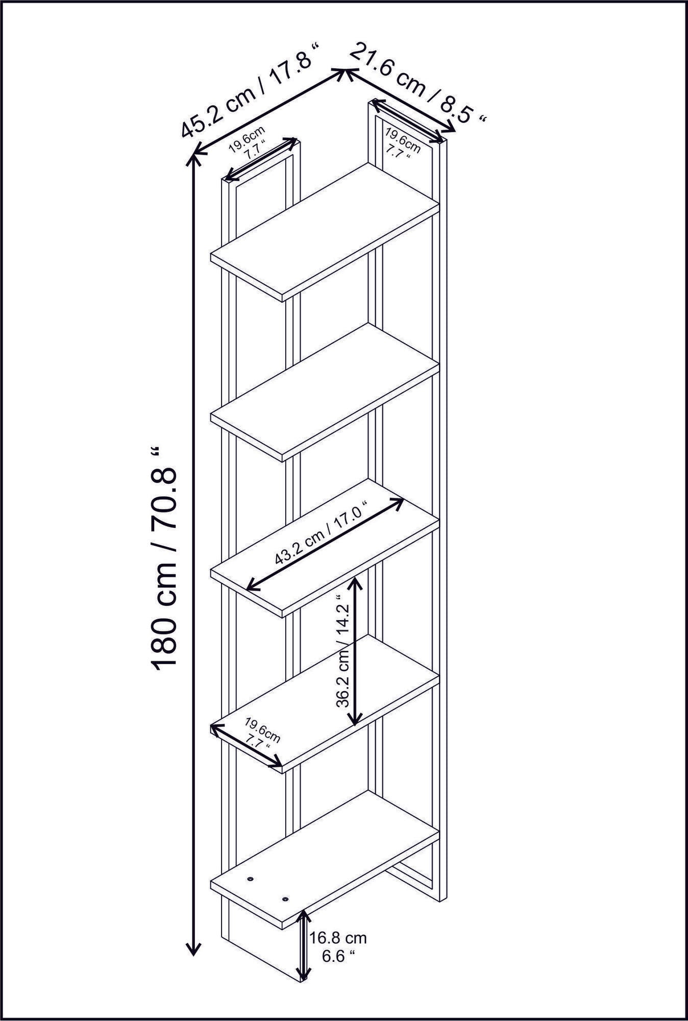 Feita de 100% de painel de partículas revestido de melamina e uma estrutura metálica robusta, esta estante foi projetada para durar. A espessura de 18mm garante durabilidade, enquanto a capacidade de suporte de prateleira de 25kg permite que você exiba seus livros favoritos, decorações e muito mais com facilidade.