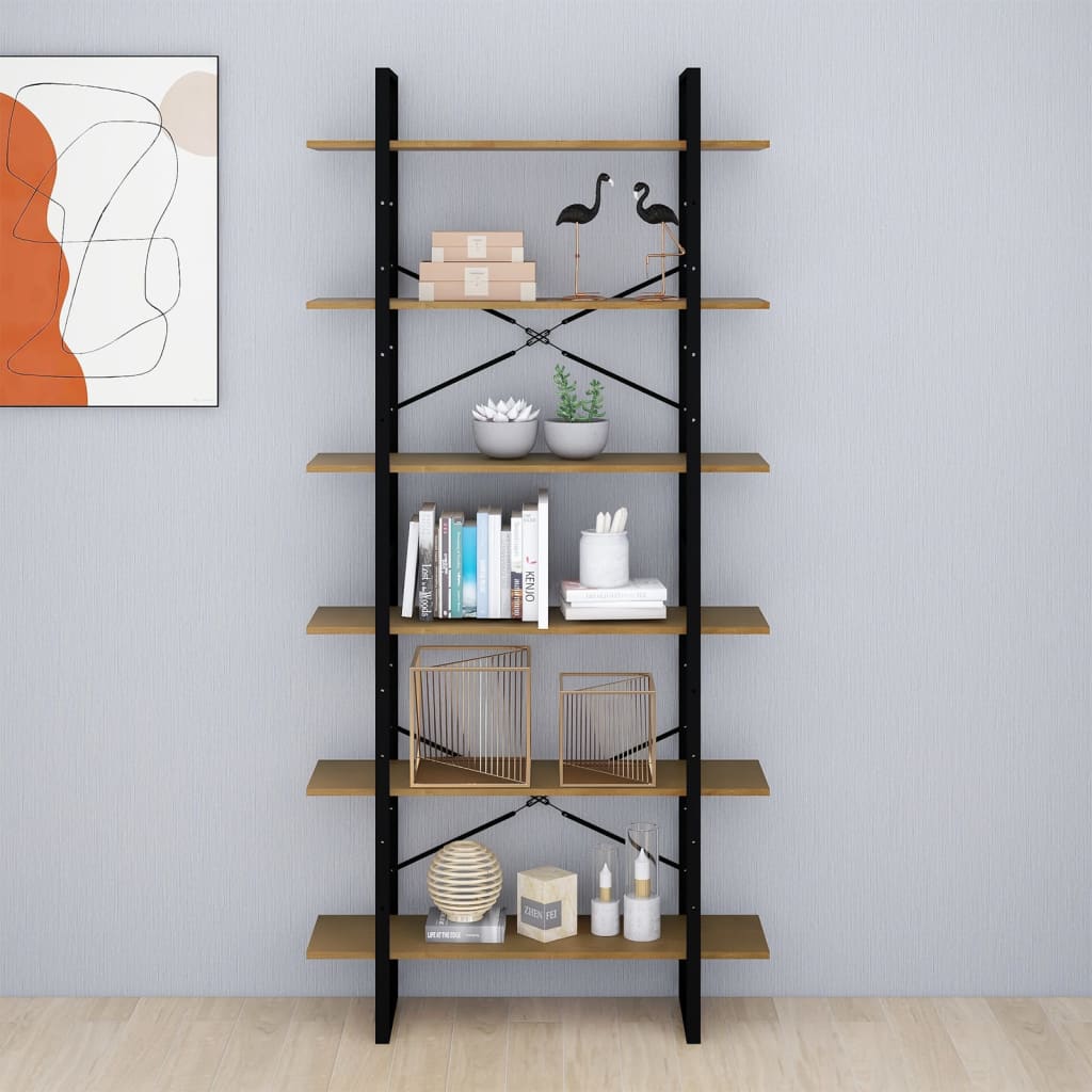 Esta estante é feita em madeira de pinho maciça, assegurando a sua robusteza e durabilidade. Apresenta 6 prateleiras, oferecendo um espaço amplo para arrumar e expor os seus artigos ou decorações. A estante de arrumação é fácil de limpar com um pano húmido. Pode também ser utilizada como 2 móveis mais pequenos.