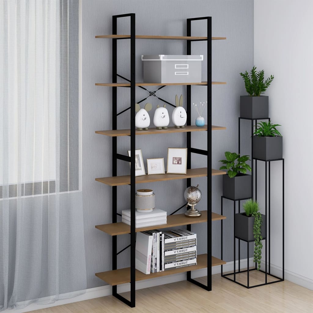 A estante alta de madeira pode ser perfeitamente integrada com a mobília da sua casa e cria um aspeto industrial.