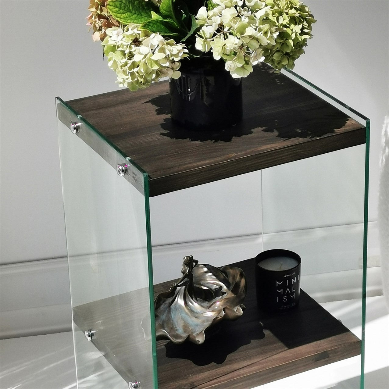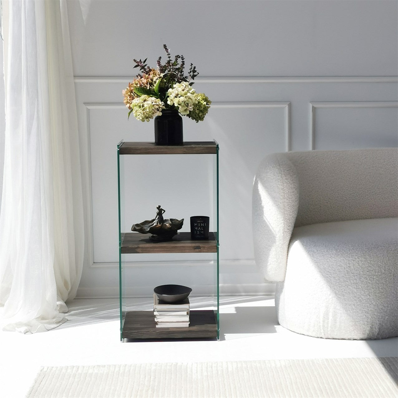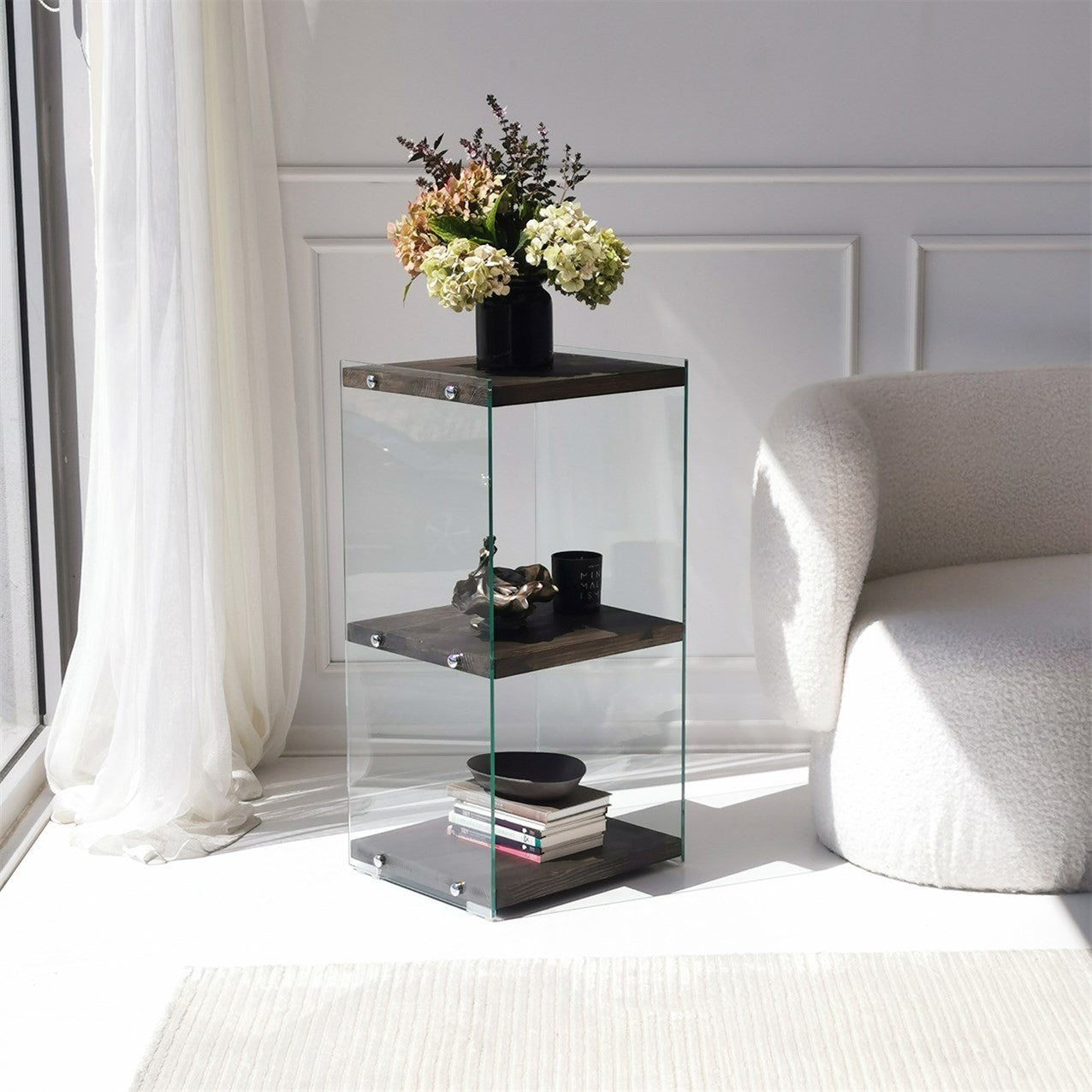 Estante elegante em antracite, 40 x 80 x 35 cm | Estrutura 100% madeira maciça e 100% vidro temperado | Desmontada para fácil montagem, perfeita para espaços modernos
