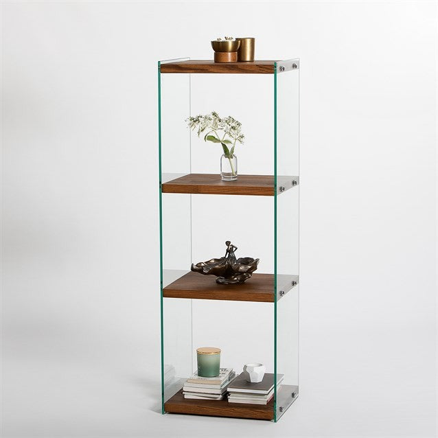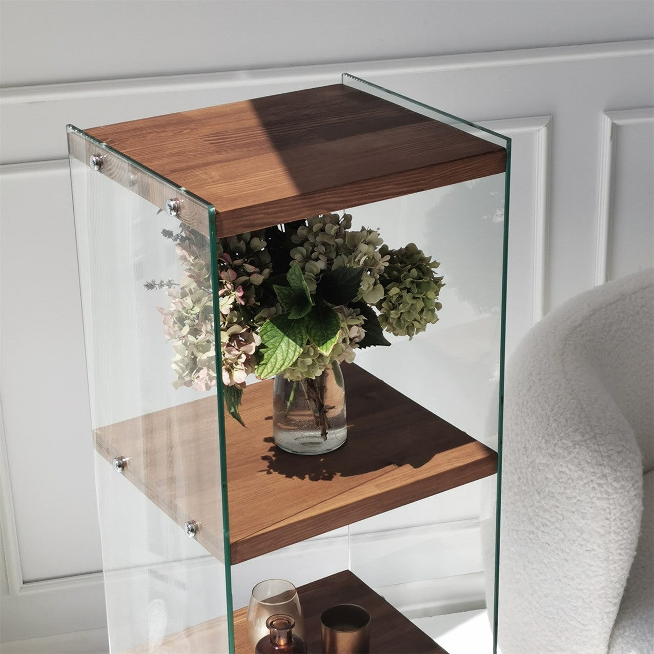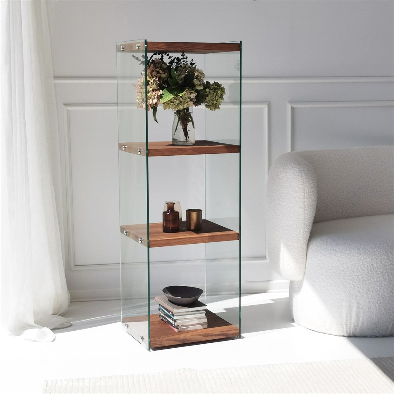 Estante elegante, 120 cm de altura, 40 cm de largura, 35 cm de profundidade | Estrutura 100% madeira maciça e vidro temperado | Acabamento natural, solução de armazenamento elegante e funcional