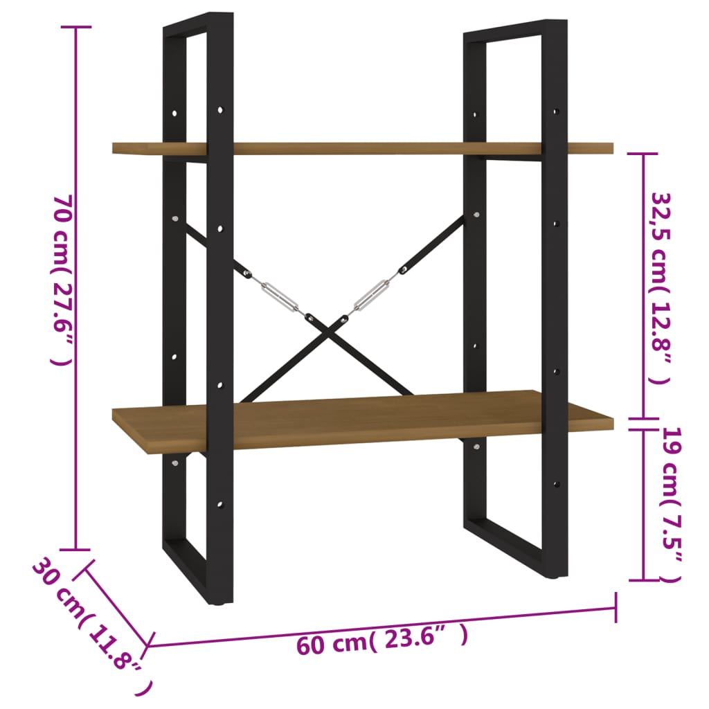 Estante com 2 prateleiras 60x30x70 cm pinho maciço cinzento