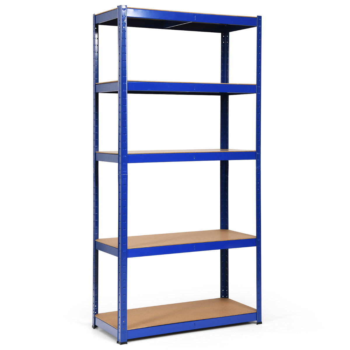 Características: Feito com estrutura de aço galvanizado e tábuas de MDF Almofadas antiderrapantes para aumentar a estabilidade e evitar riscar o chão 5 prateleiras espaçosas para colocar vários objetos Ideal para garagem, armazém, cozinha, casa de banho, etc. Design sem parafusos para montagem fácil Cada prateleira suporta até 175 kg Fácil de limpar com revestimento anti-ferrugem e anticorrosão