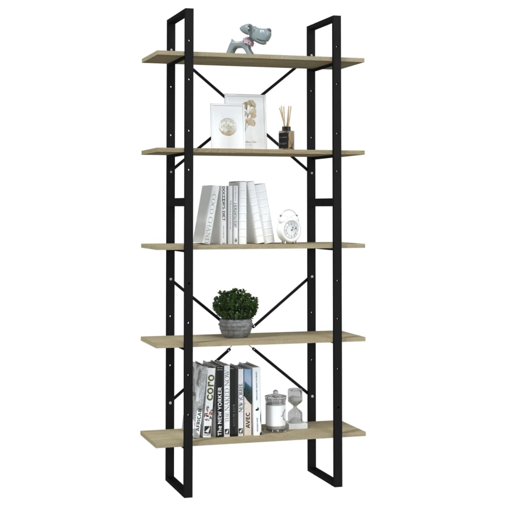 A estante é feita com derivados de madeira de qualidade e uma estrutura em metal, assegurando a sua robustez, durabilidade e utilização a longo prazo. Apresenta 5 prateleiras, oferecendo um amplo espaço de arrumação para colocar livros, revistas e outros artigos decorativos. A estante é fácil de limpar com um pano húmido.
