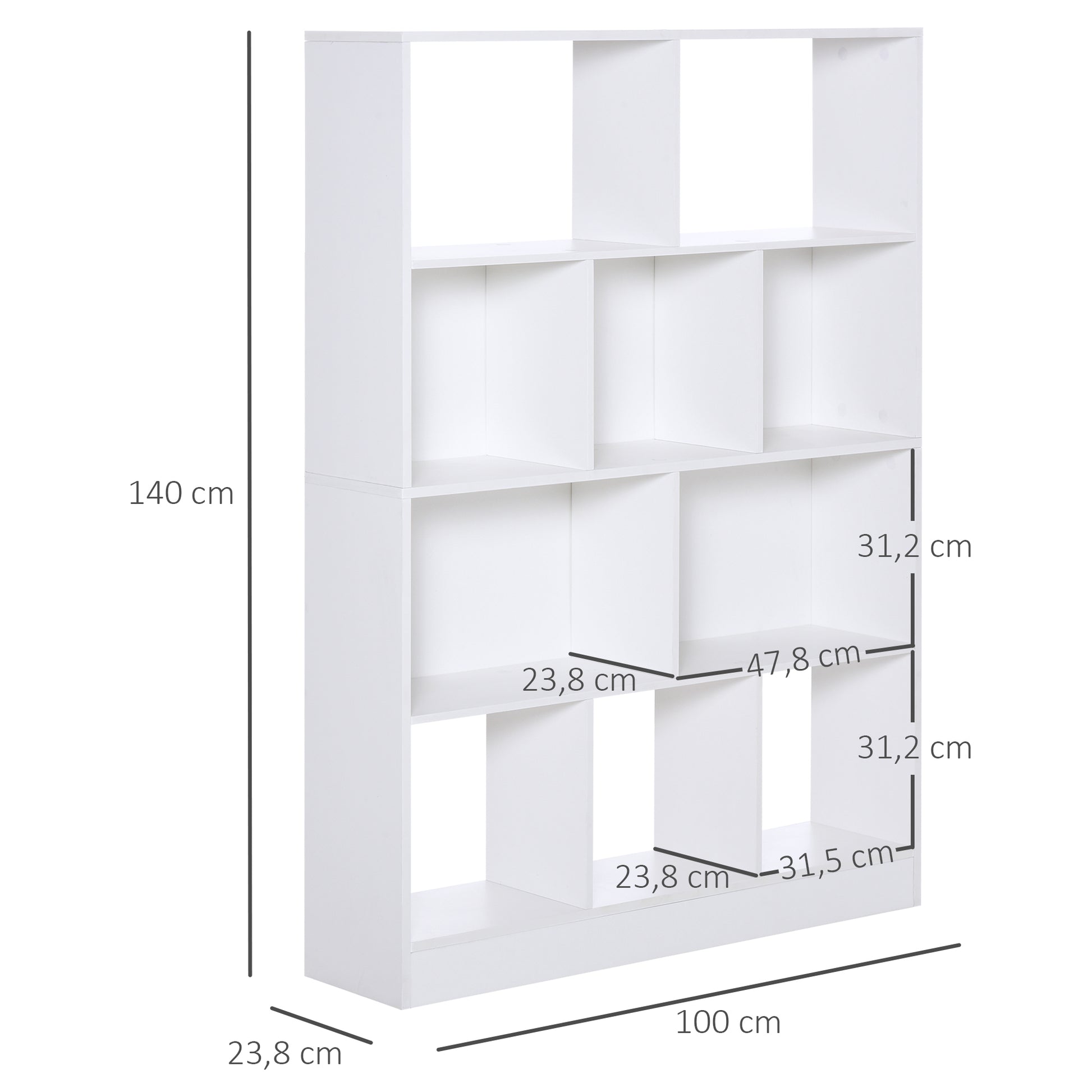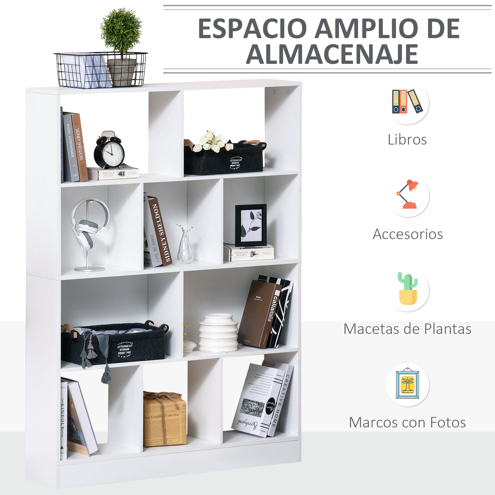 Adicione versatilidade e organização ao seu espaço com esta estante de 4 níveis e 10 compartimentos.