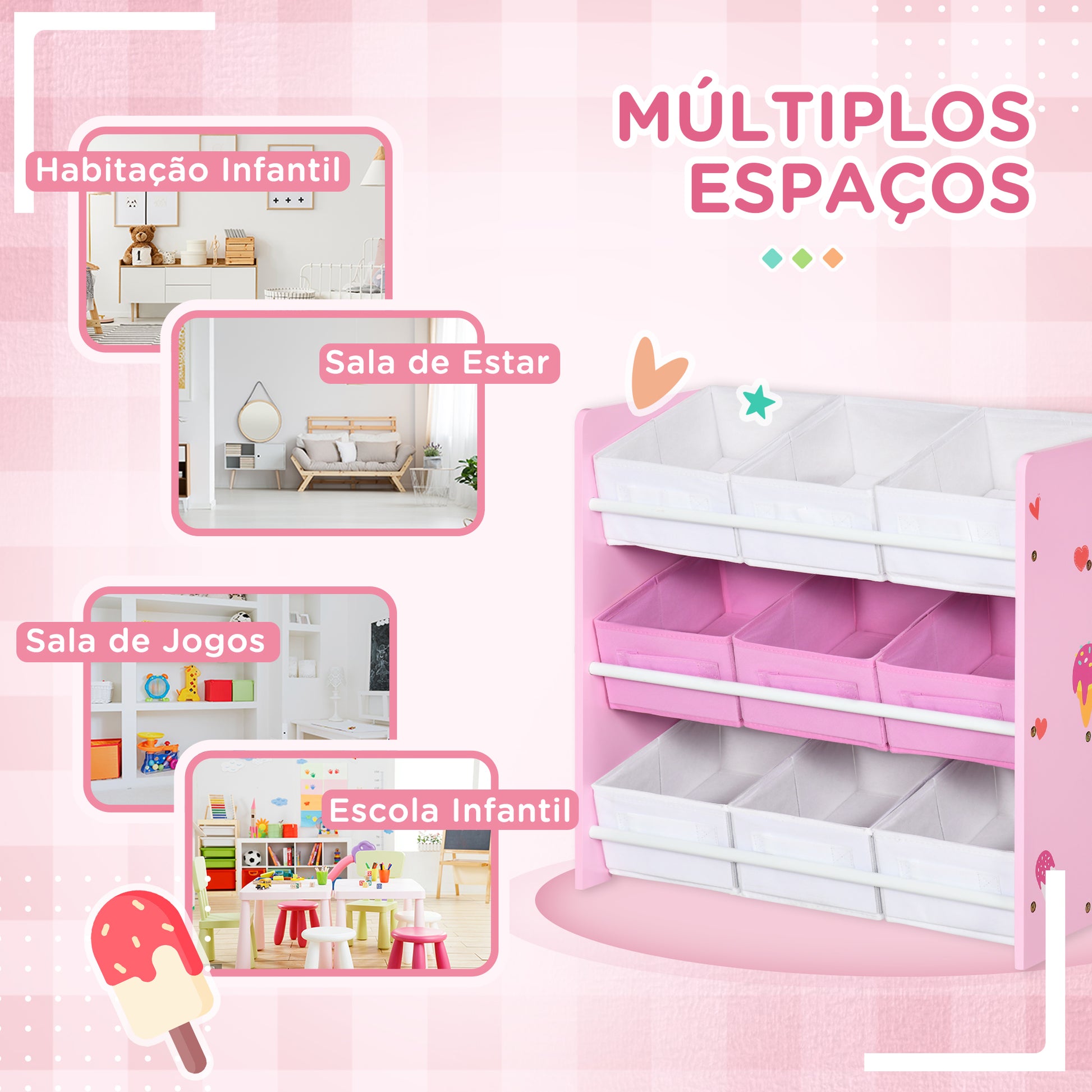 Estante de Brinquedos com 9 Caixas de Tecido Não Tecido Rosa 63x30x60 cm