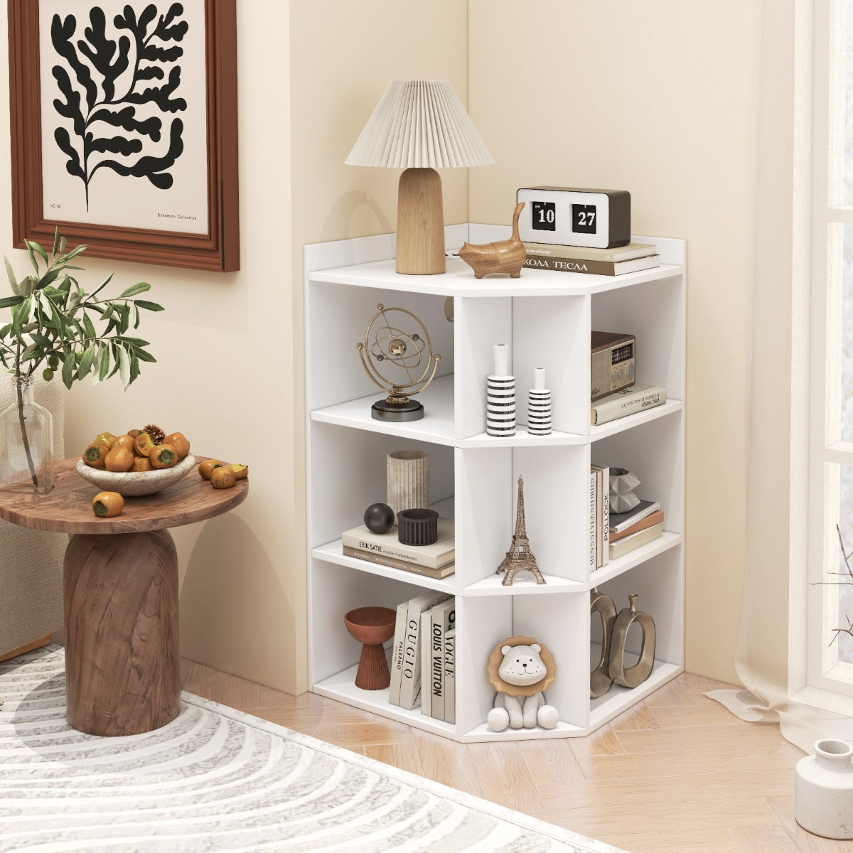 - Estante de canto que poupa espaço: Estrutura triangular que se encaixa perfeitamente em qualquer canto de diferentes divisões, ideal para sala de estar, quarto, escritório, estúdio, quarto de criança ou sala de jogos.