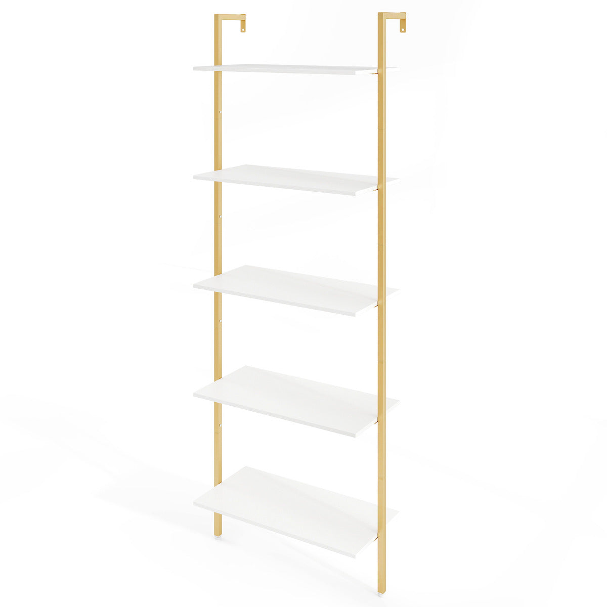 Estante de Escada de 5 Níveis Montada na Parede com Estrutura Metálica - Branco