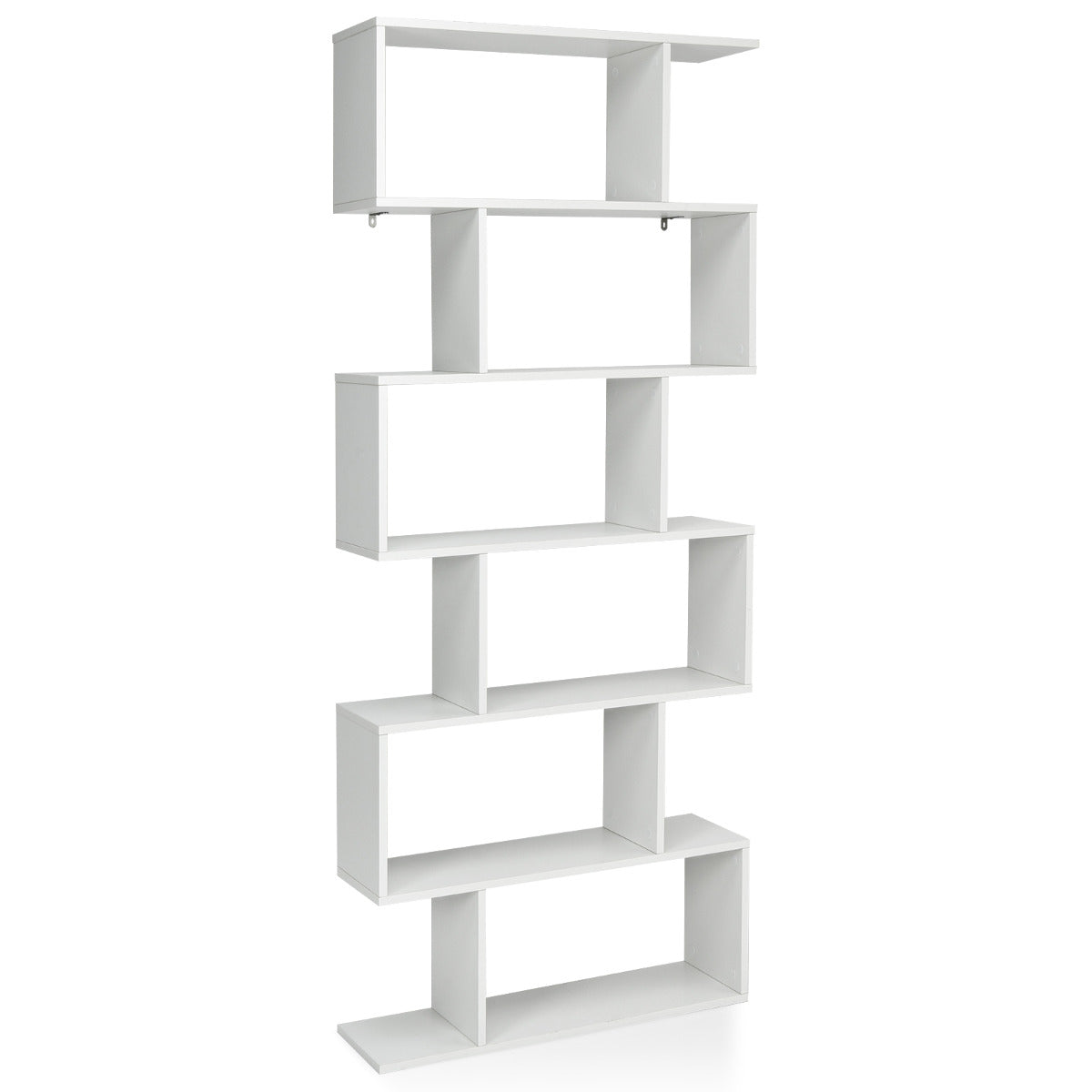 Estante de Livros de 6 Níveis em Forma de S - Dispositivo Antivuelco - Estantería Expositor - Branco 80 x 23 x 191 cm