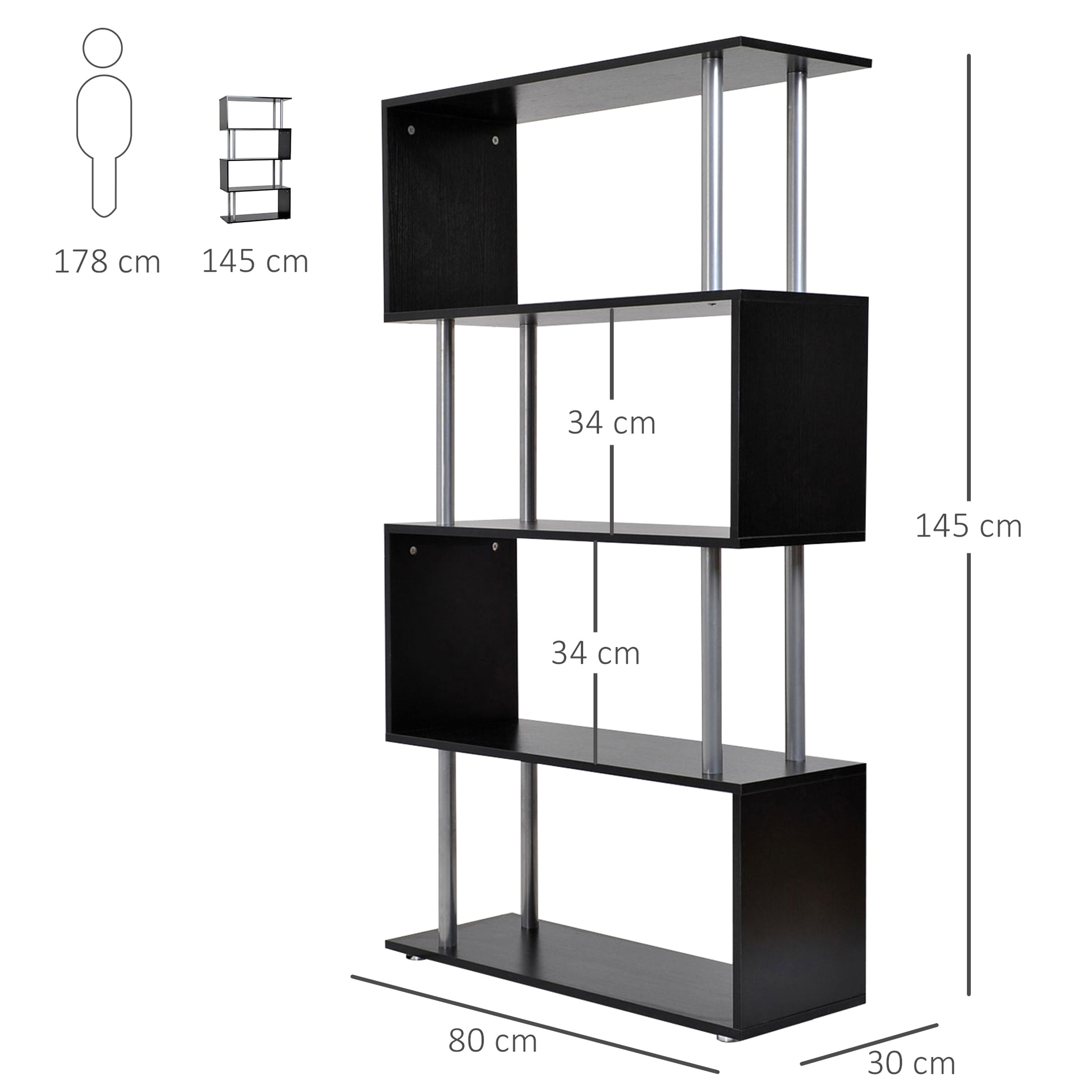 Esta estante de madeira preto oferece um amplo espaço para livros, itens de decoração, molduras e muito mais. Com 4 prateleiras em ziguezague, é ideal para qualquer ambiente, desde salas de estar a escritórios.