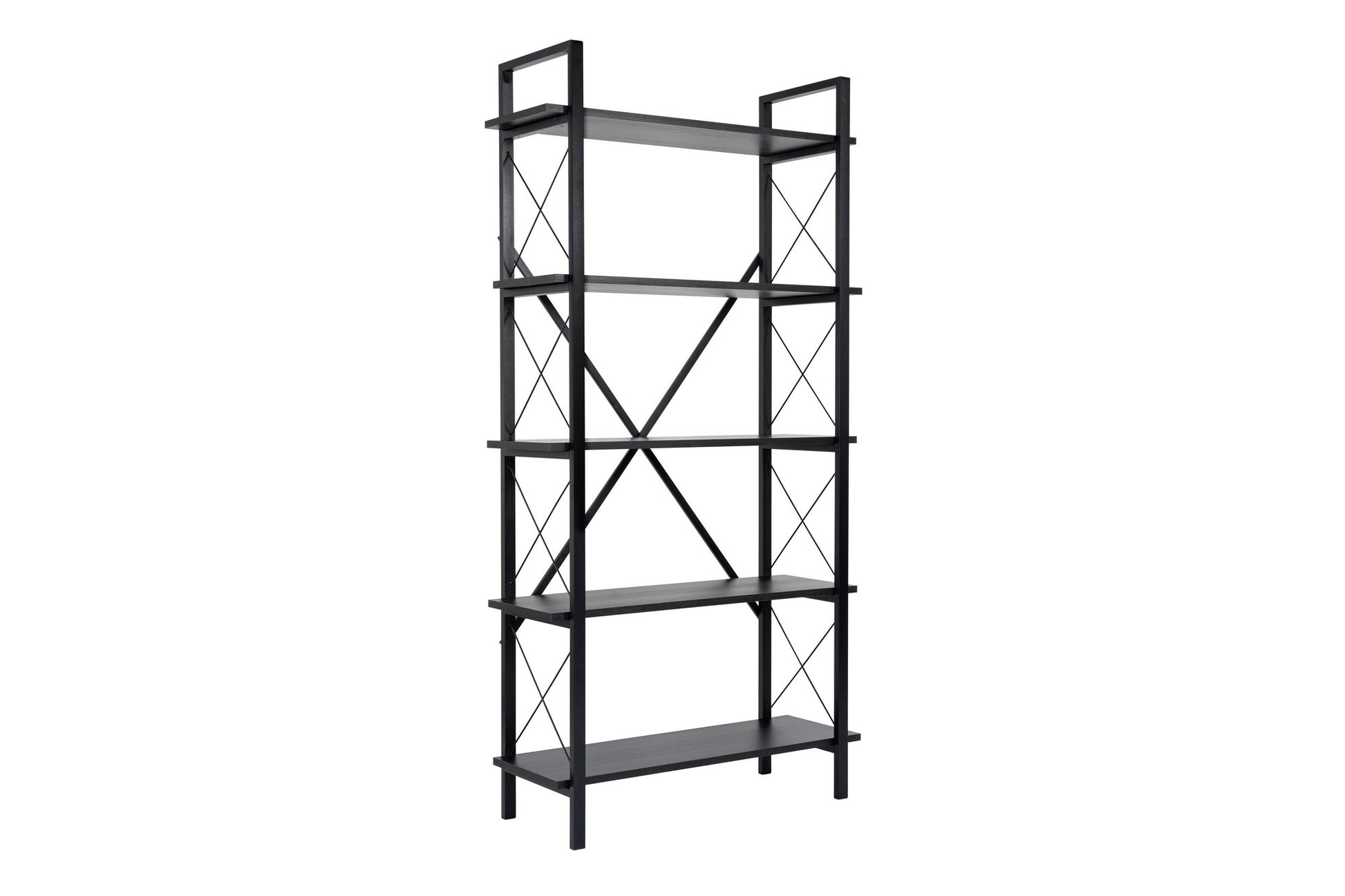 Estante elegante preta com estrutura de metal, 90 x 180 x 33,5 cm | Painel de partículas 100% revestido de melamina | Design durável e funcional para montagem na parede