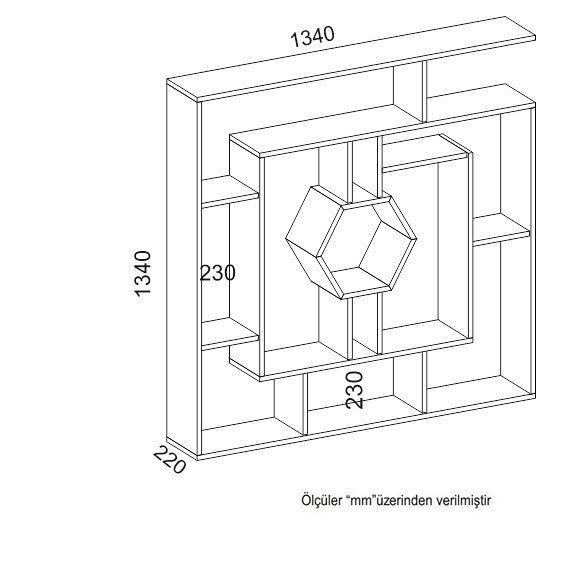 - Tamanho da estante: Largura: 134 cm, Altura: 134 cm, Profundidade: 22 cm