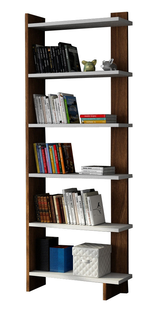 Estante moderna – 46,8 x 21,3 x 170 cm – Branco e nogueira – Painel de partículas revestido de melamina