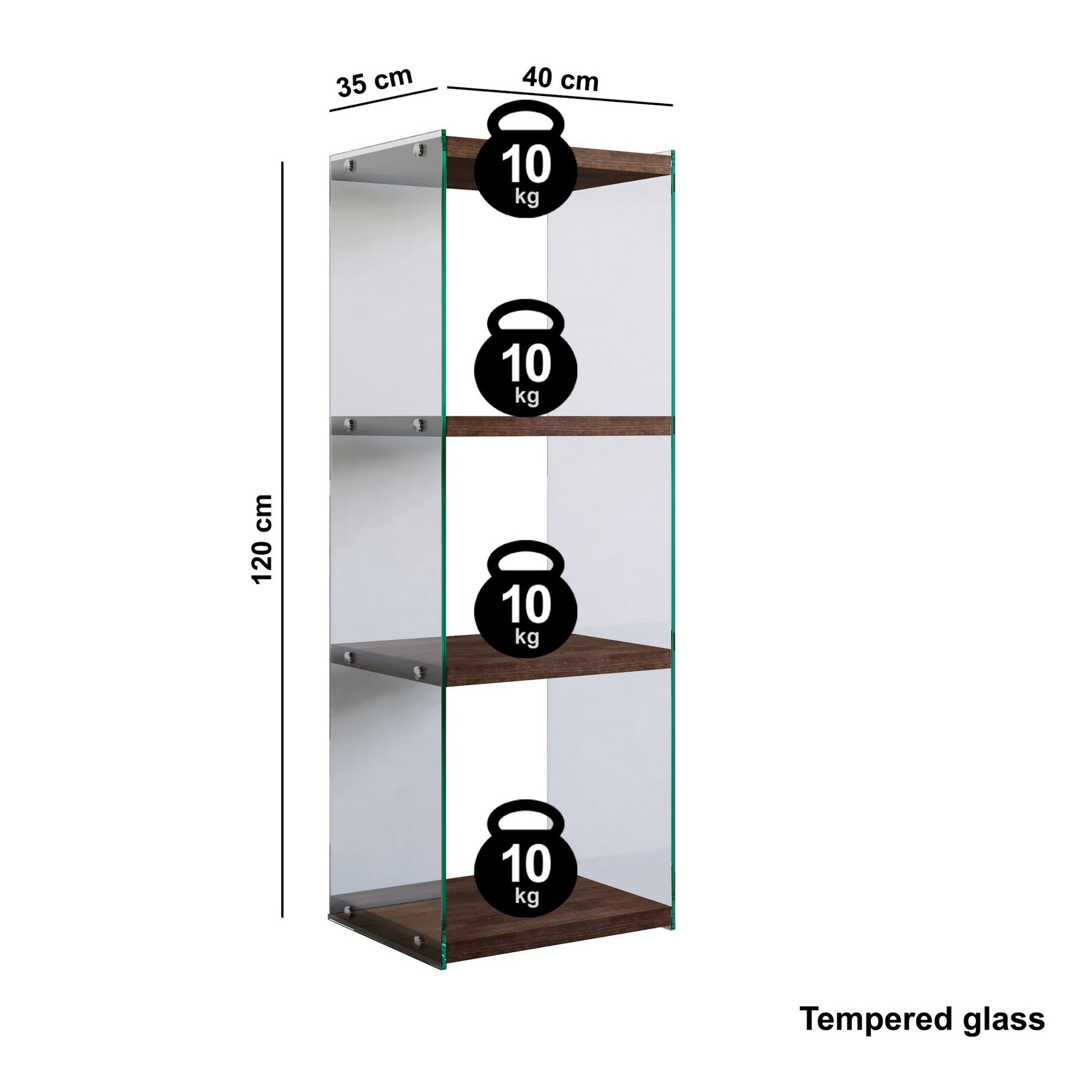 A estante possui uma estrutura robusta de 8 mm de espessura feita de vidro temperado, garantindo segurança e estilo. Com o seu design moderno e inovador, esta peça combina na perfeição com vários estilos de interiores, incluindo o tradicional americano, o rústico e o campestre. As suas numerosas prateleiras proporcionam um amplo espaço para expor os seus livros favoritos, artigos decorativos ou objectos de coleção estimados.