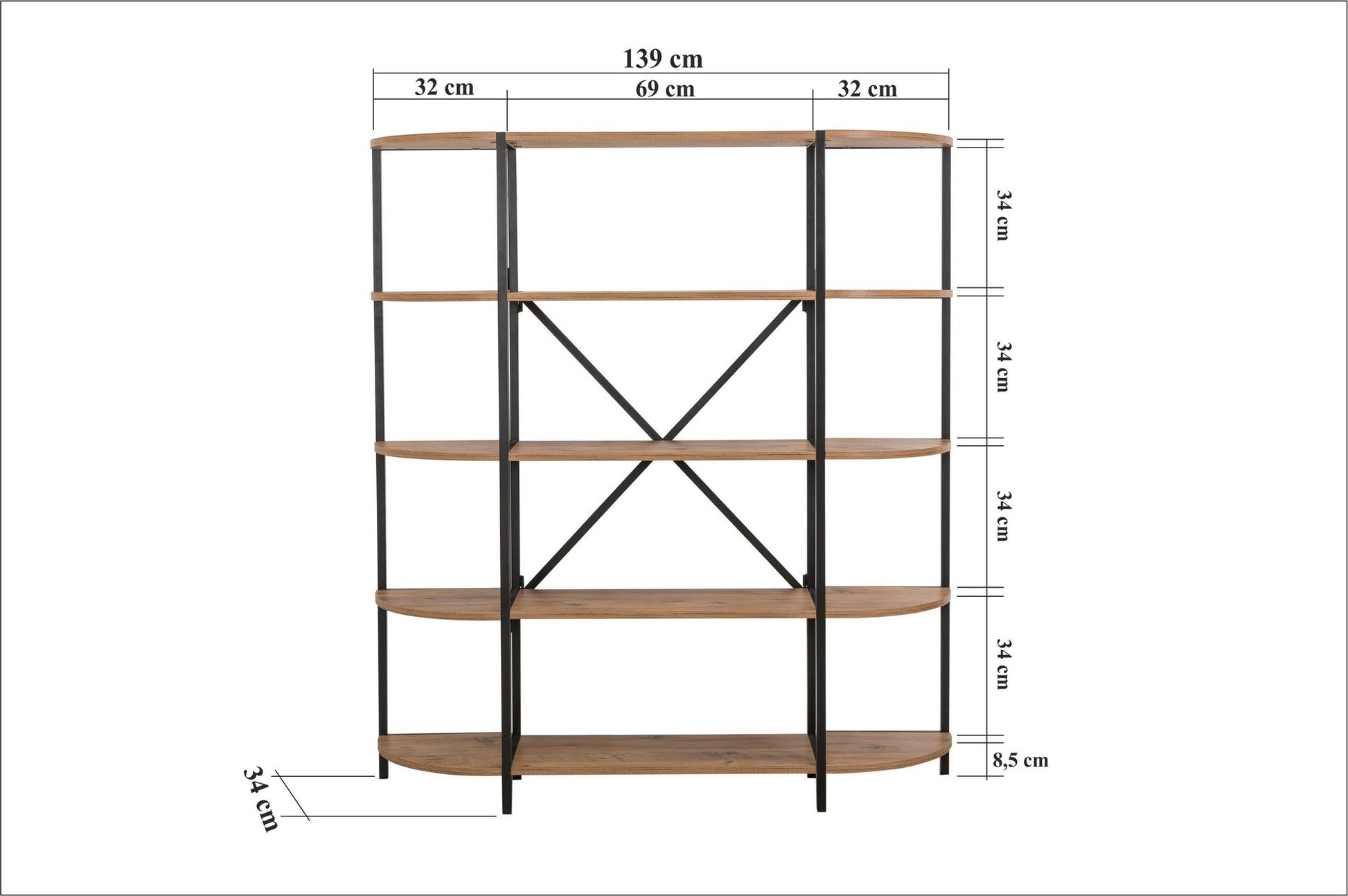 Estante de livros – 139 x 155 x 34 cm – Pinho Atlântico e Preto – Painel de partículas revestido a melamina