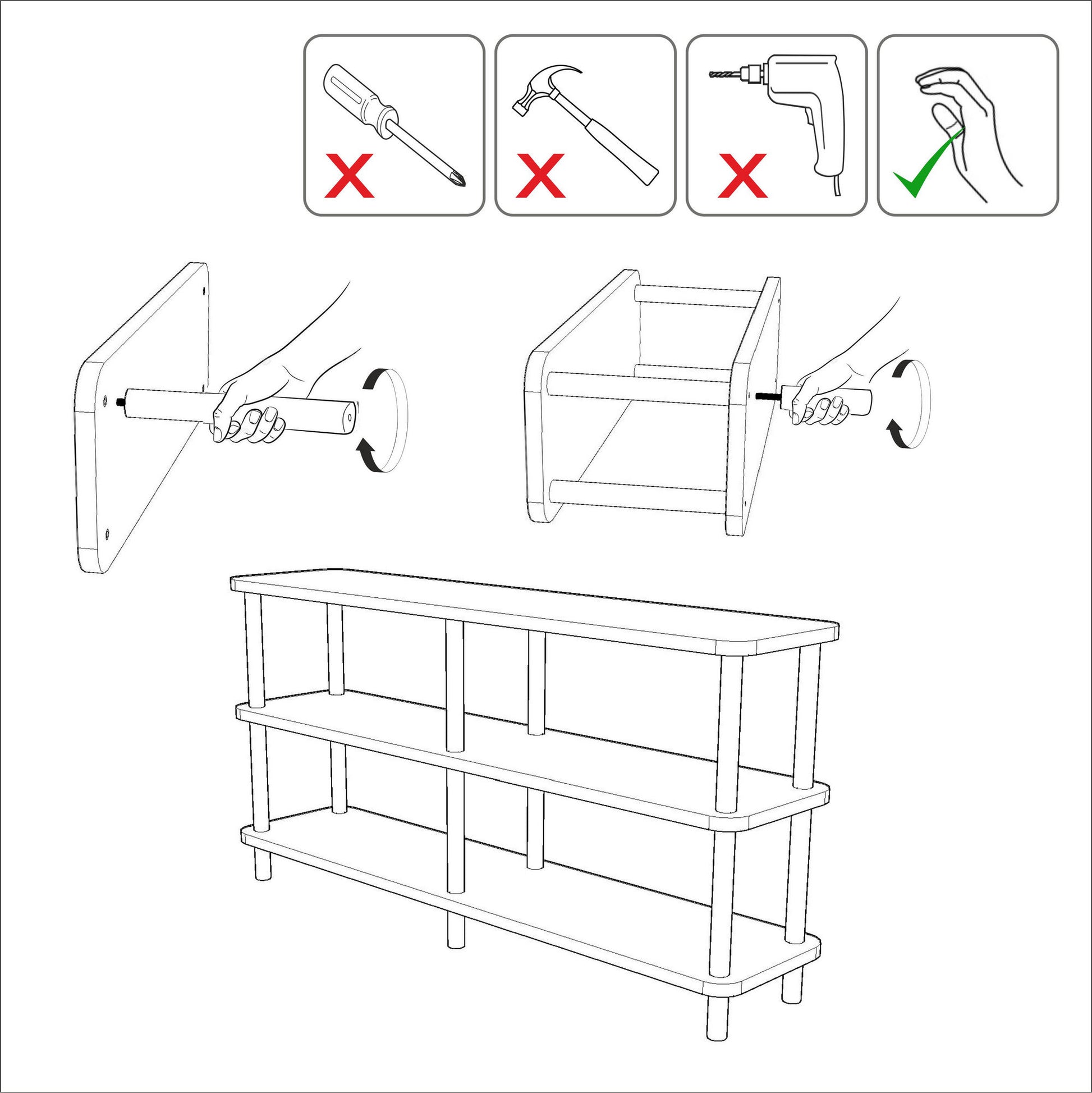 Feita de 100% de aglomerado revestido de melamina e pernas e colunas de faia, esta estante foi construída para durar. A espessura de 25mm garante estabilidade e durabilidade, enquanto a capacidade de carga de 30kg por prateleira permite que você armazene todos os seus itens essenciais com facilidade.
