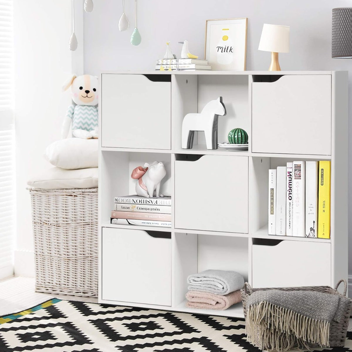 - Armazenamento multifuncional com 9 compartimentos, sendo 5 deles com portas, proporcionando muito espaço para os seus livros, brinquedos, decorações e outras necessidades diárias.