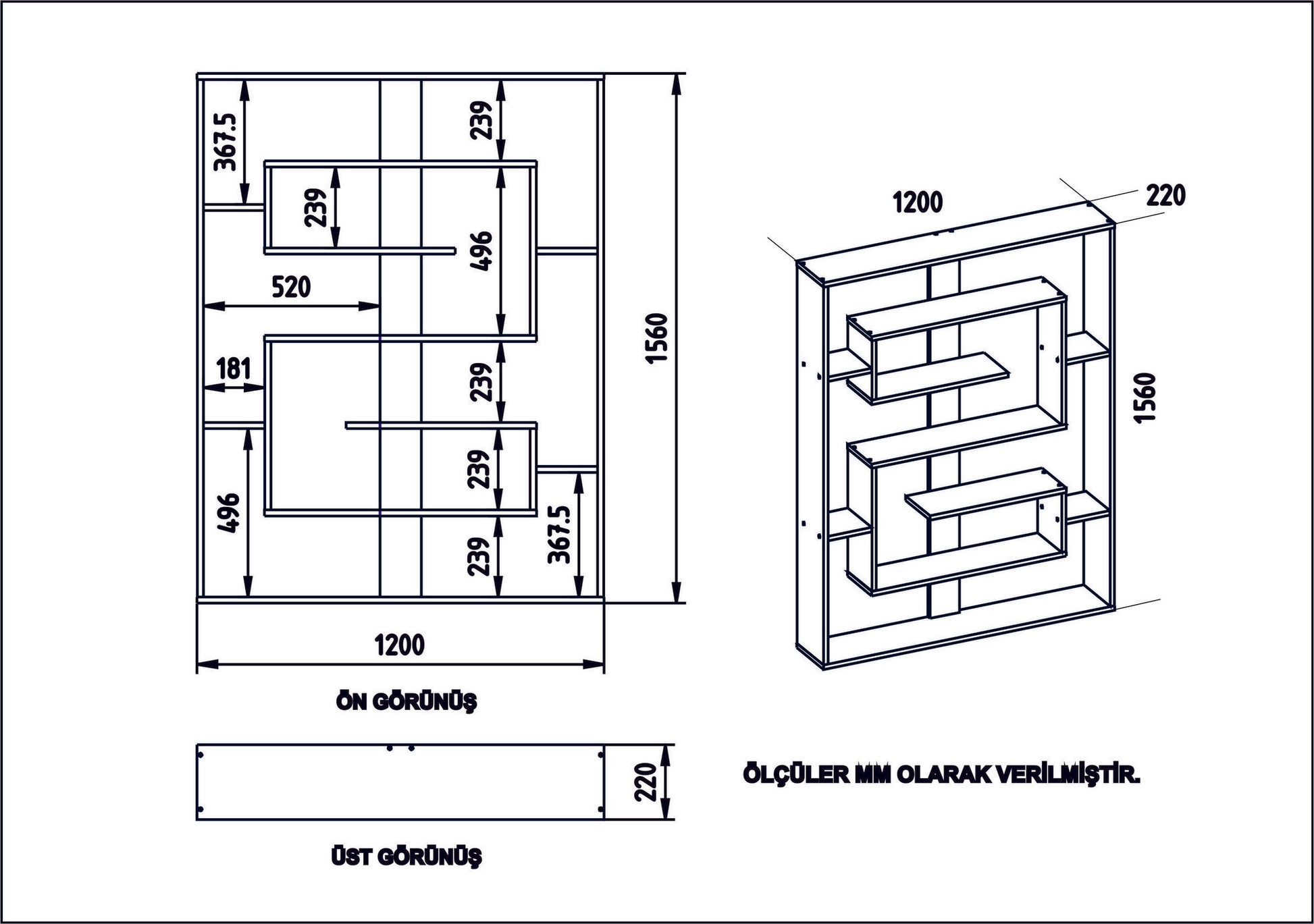 - Tamanho da estante: Largura: 120 cm, Altura: 156 cm, Profundidade: 22 cm