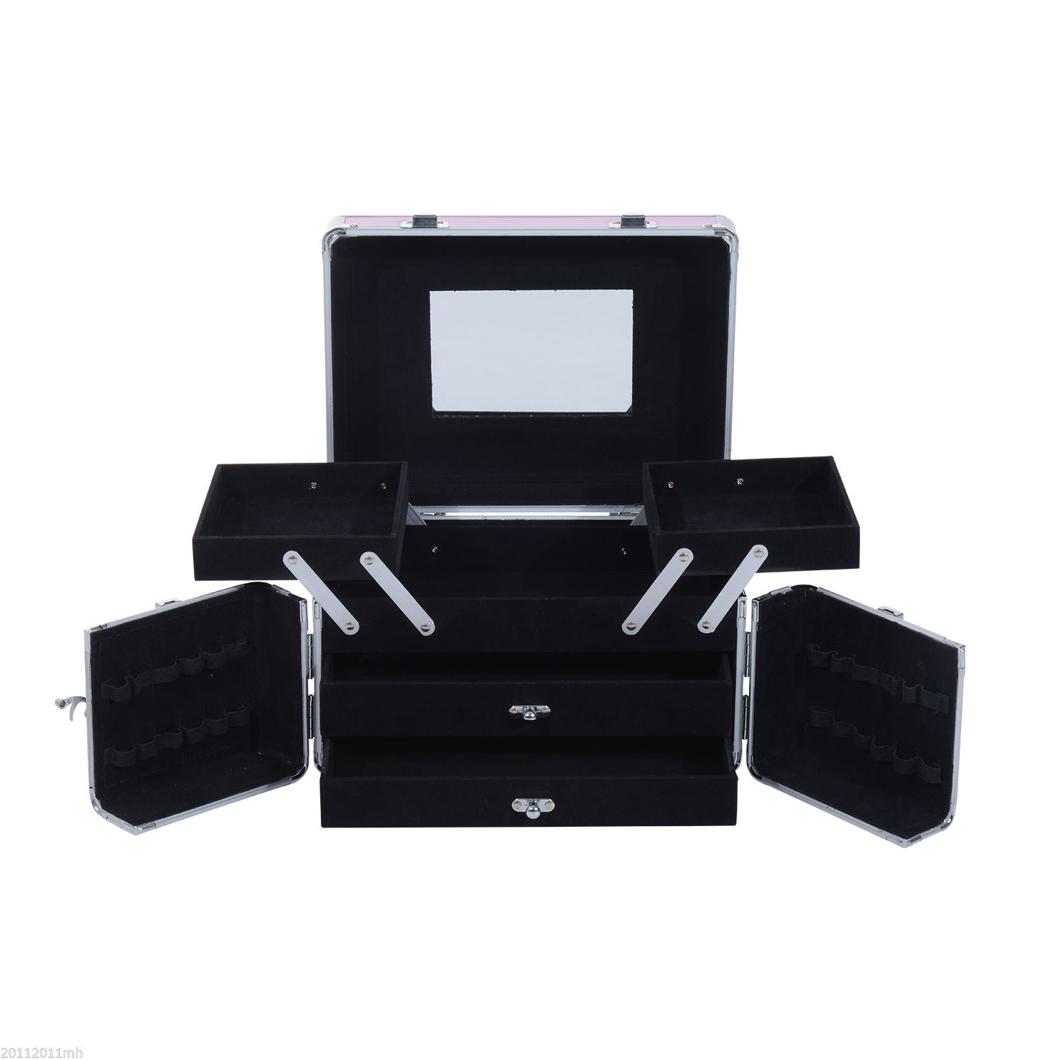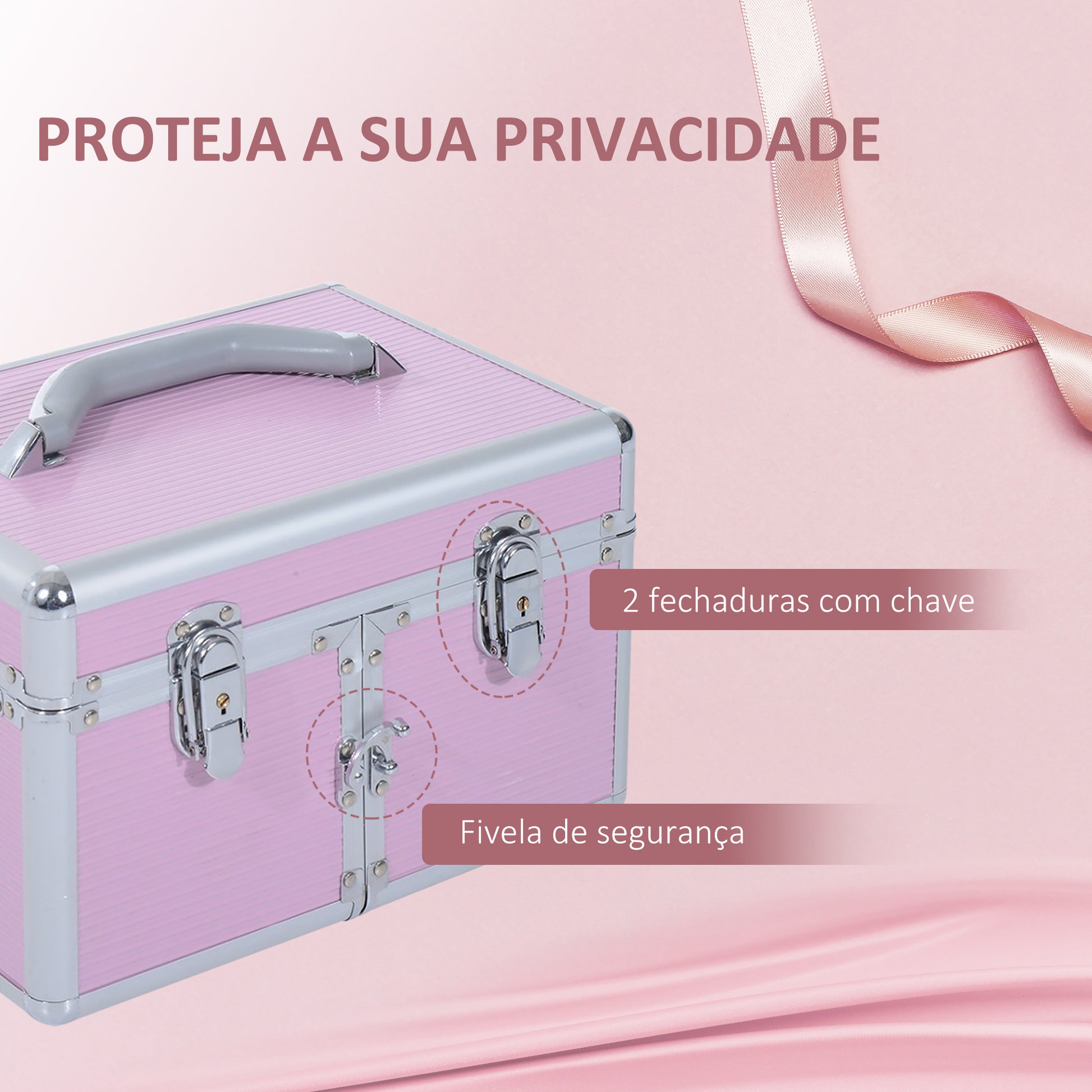 Este estojo de maquilhagem profissional é ideal para manter os seus cosméticos organizados de forma segura e acessível. Com duas fechaduras para proteção, evita a desordem na casa de banho ou nas gavetas, tornando o transporte mais fácil e conveniente.