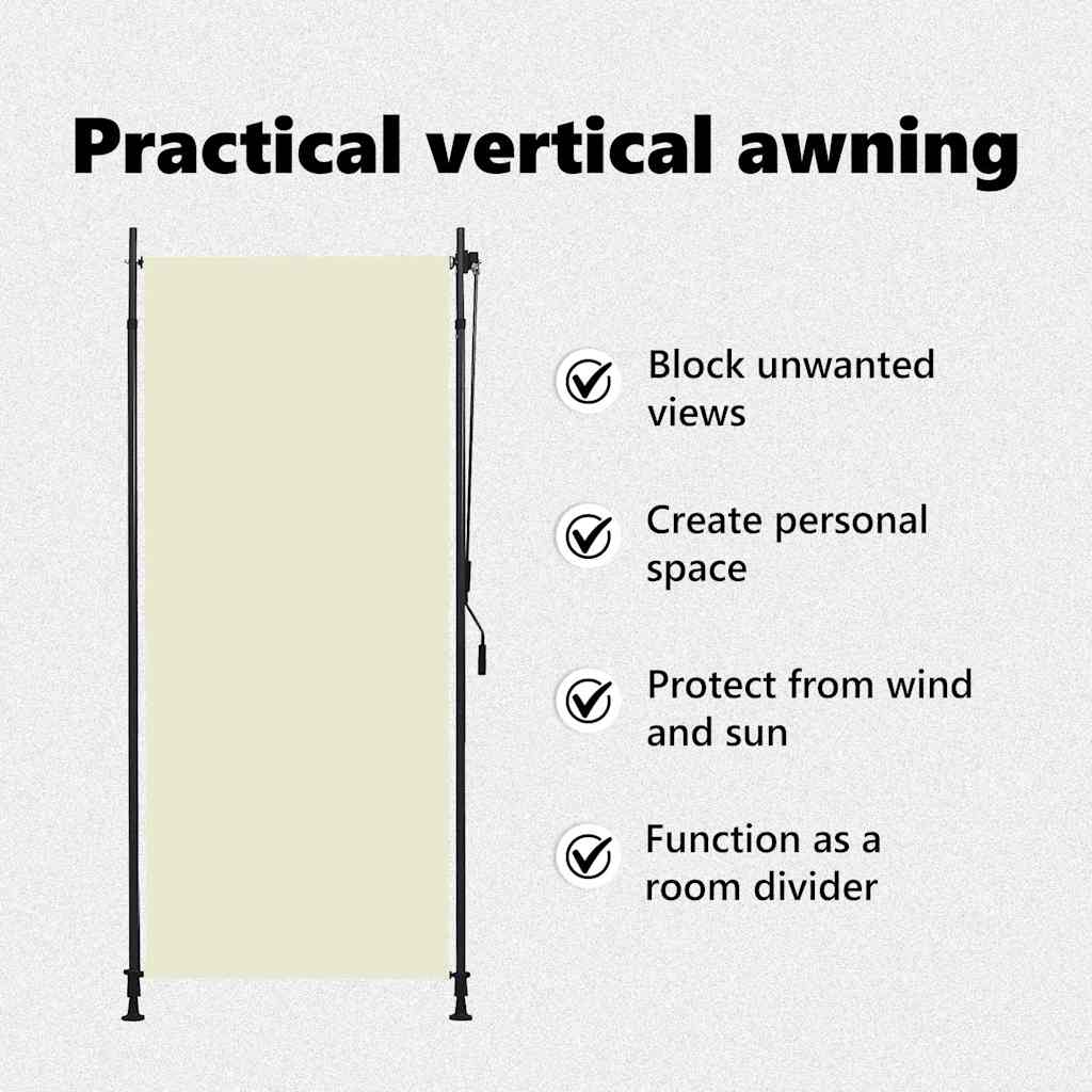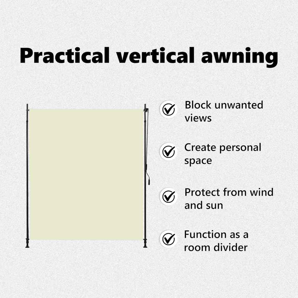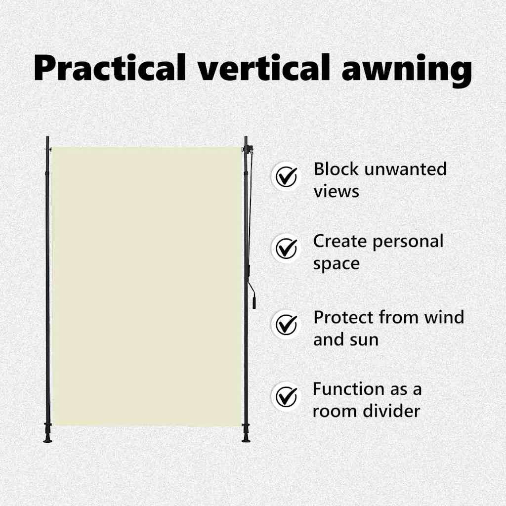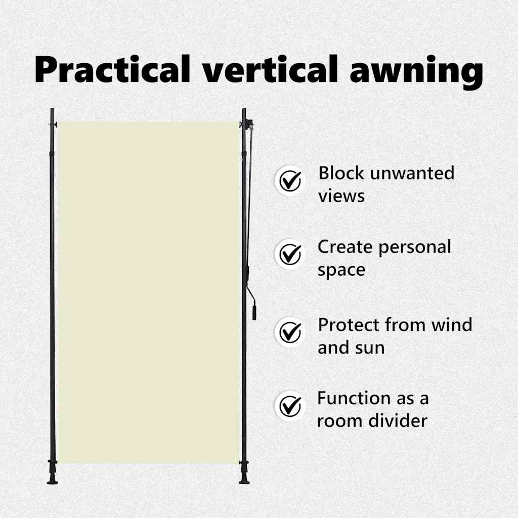 Feito em tecido de qualidade revestido a PA, é resistente ao desbotamento e consegue bloquear o sol, embora permita a passagem do ar. Pode ser facilmente enrolado para cima e para baixo com o sistema de manivela. Este estore vertical é fornecido com dois postes de pé com altura ajustável de 2 a 3 m. Adapta-se à maior parte das alturas de teto e garante uma fácil instalação.
