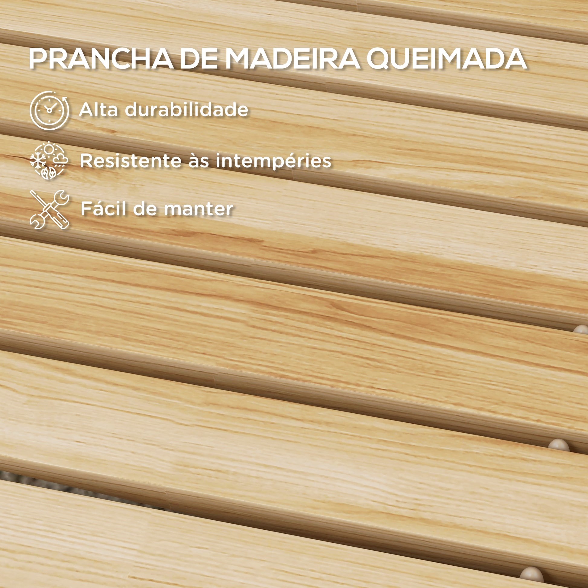 Este estrado de ripas de madeira natural é versátil e resistente, ideal para uso em exteriores. Com medidas totais de 120x38 cm e ripas de 38x4x1 cm, oferece uma solução prática para várias situações.