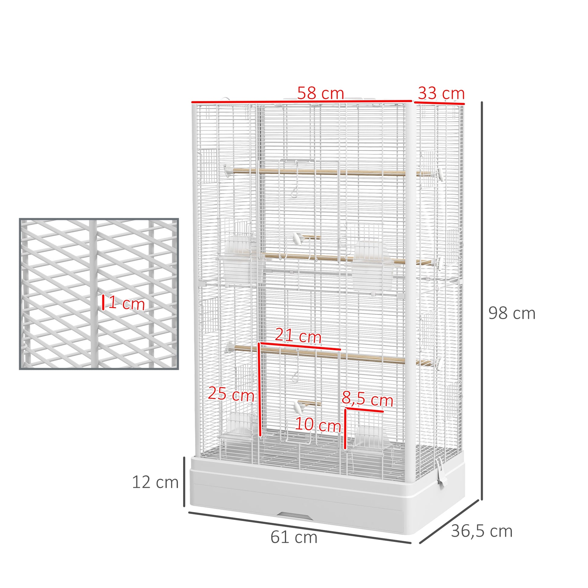 Gaiola para Aves 61x36,5x98 cm Branco