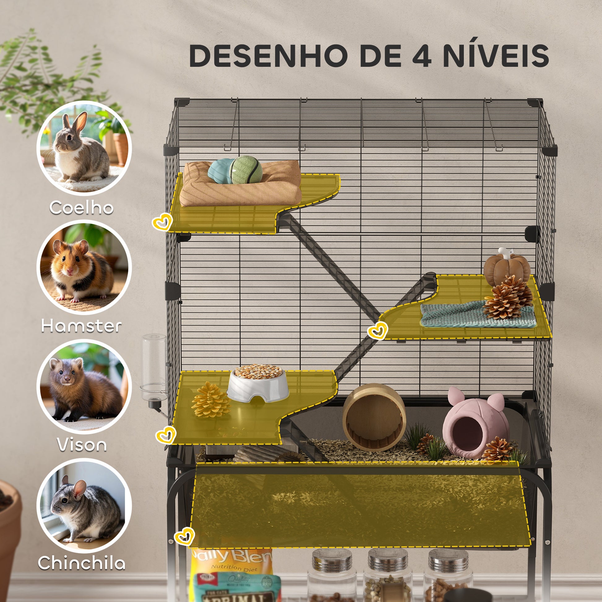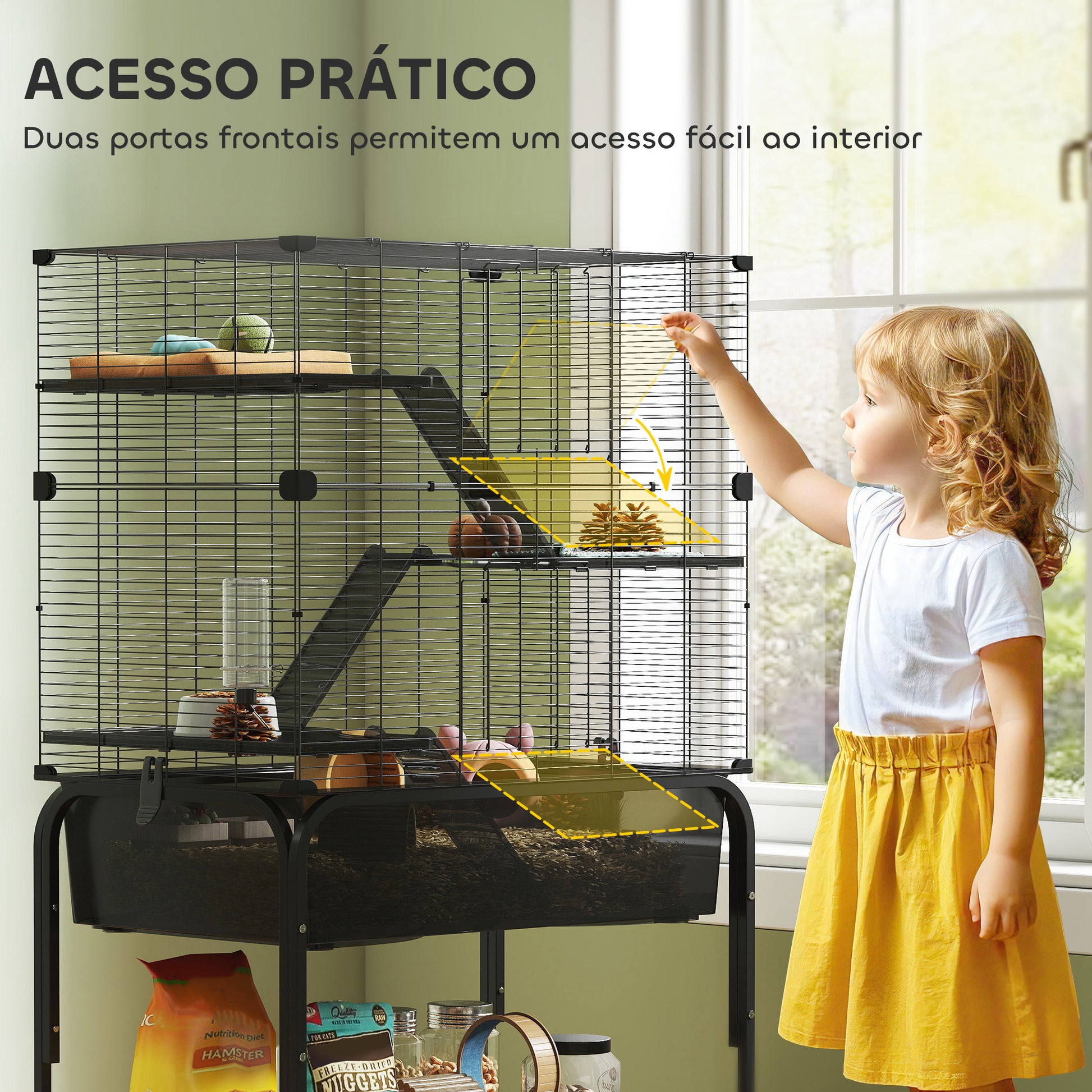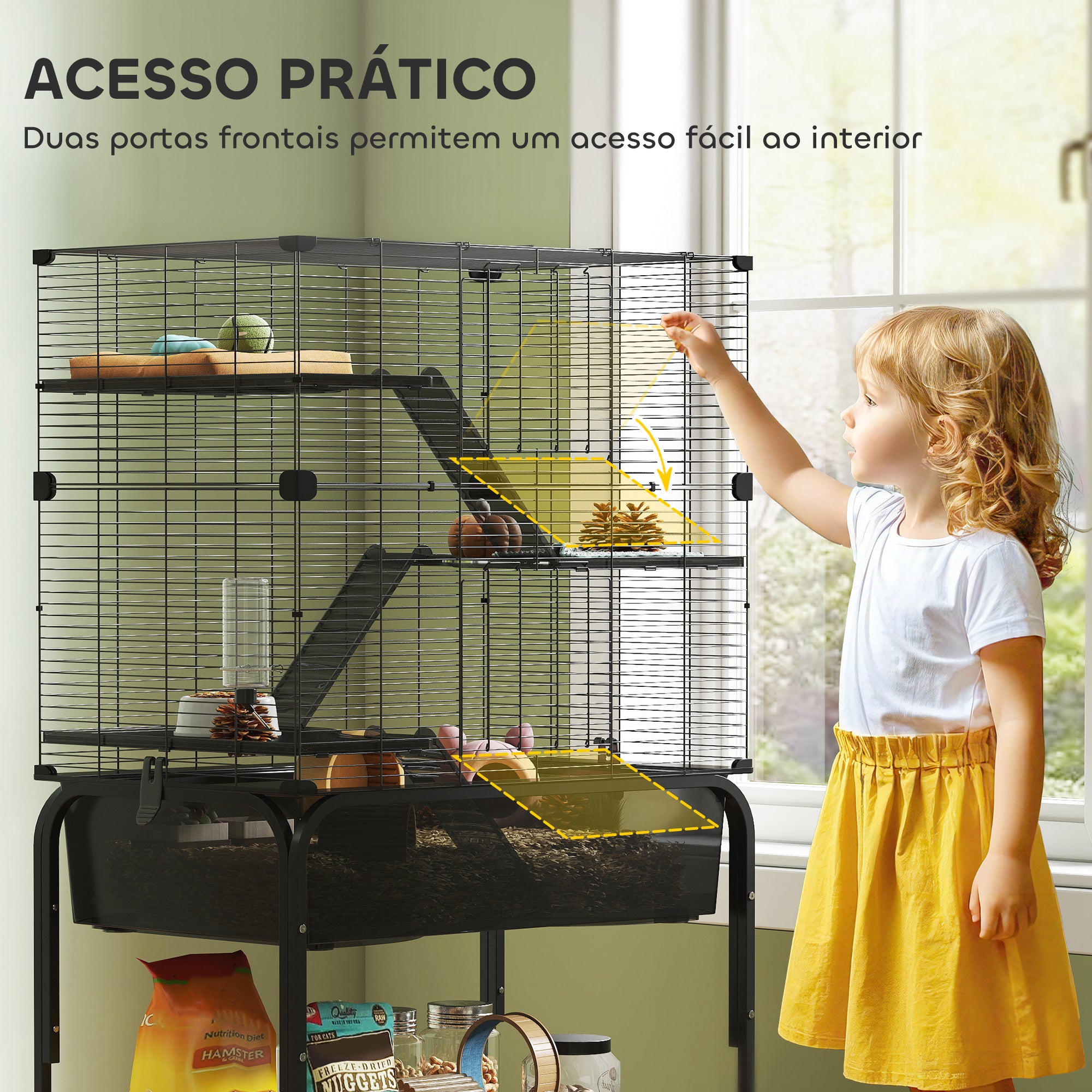 Gaiola para Pequenos Animais de 4 Níveis 73x47x123 cm Preto