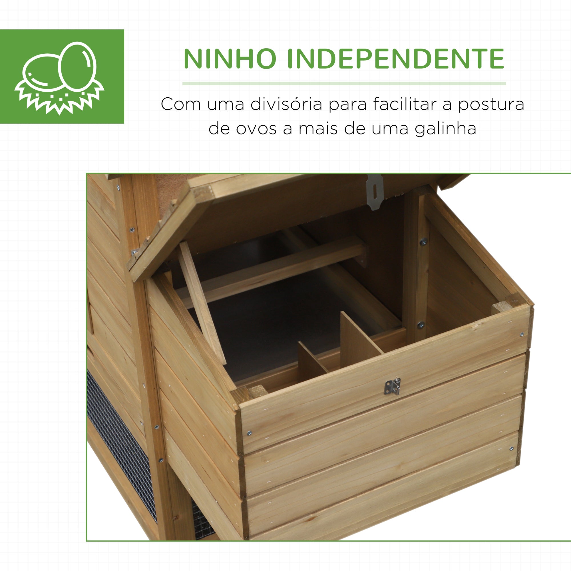 Este galinheiro de madeira para exterior é o espaço perfeito para suas galinhas descansarem e se movimentarem com segurança. Possui uma ampla zona aberta e uma casa com ninho lateral, proporcionando múltiplos acessos e conforto para seus animais.