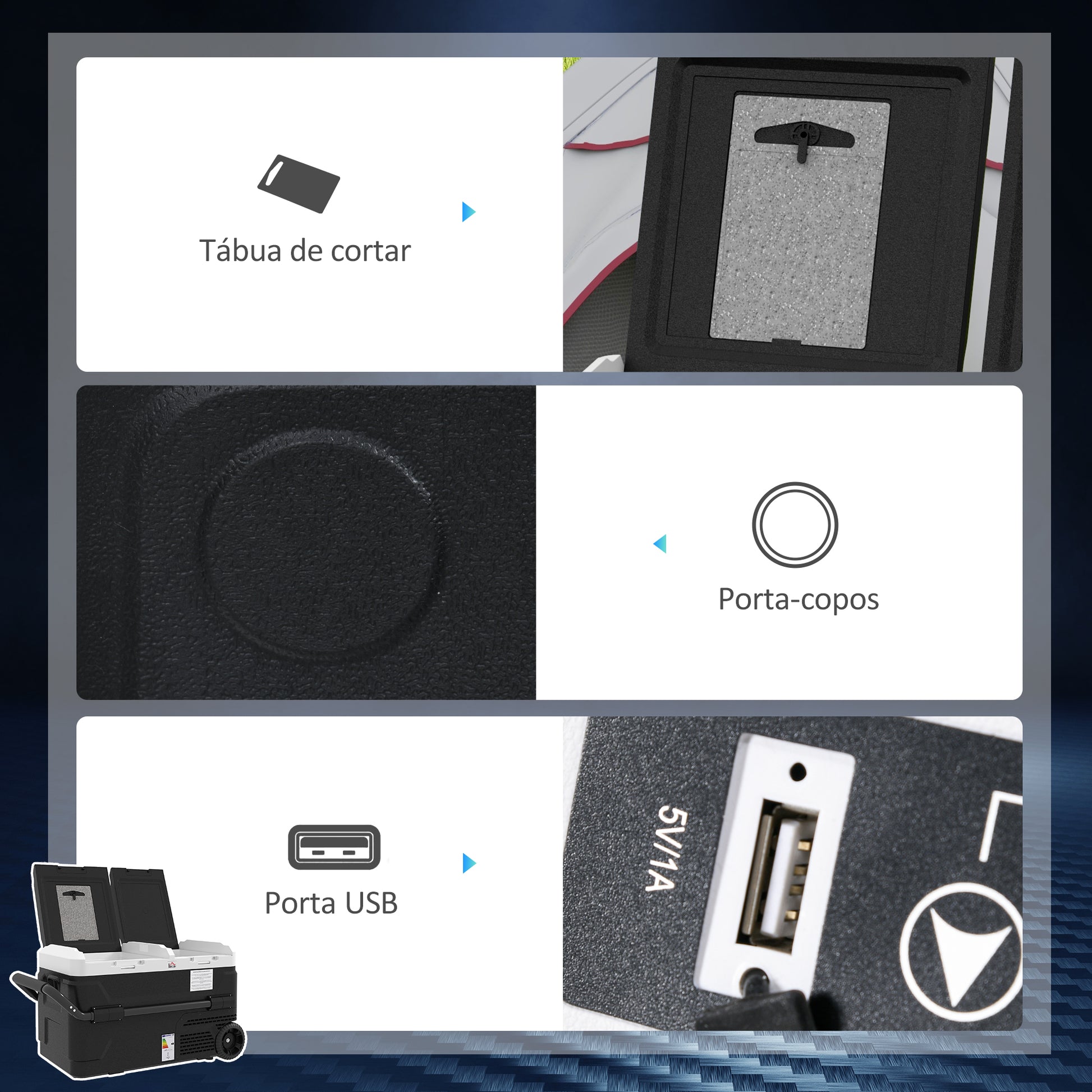 Geleira Elétrica Portátil 40L -20℃ a 20℃ 12 / 24V DC e 100-240V AC 80x47,5x46,6 cm Preto