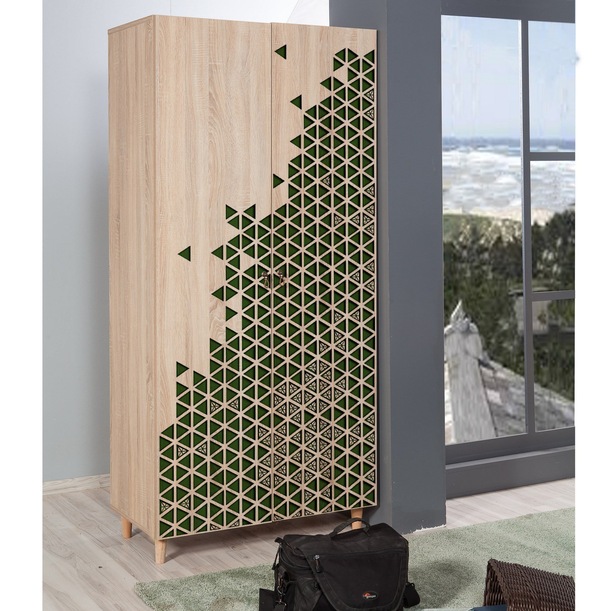 Melhore o seu espaço com o nosso roupeiro abstrato e moderno e experimente a combinação perfeita de estilo e funcionalidade. Encomende o seu hoje e transforme o seu quarto num paraíso de elegância e organização.