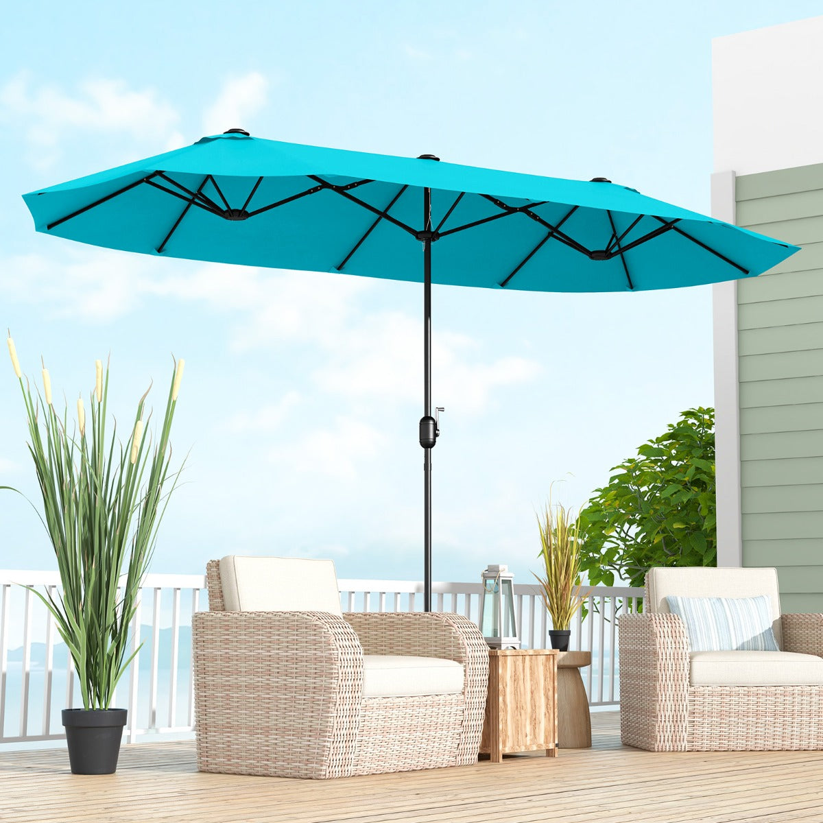 Guarda-Sol Duplo Exterior com Base Preenchível Manivela 12 Varetas de Alta Resistência Turquesa