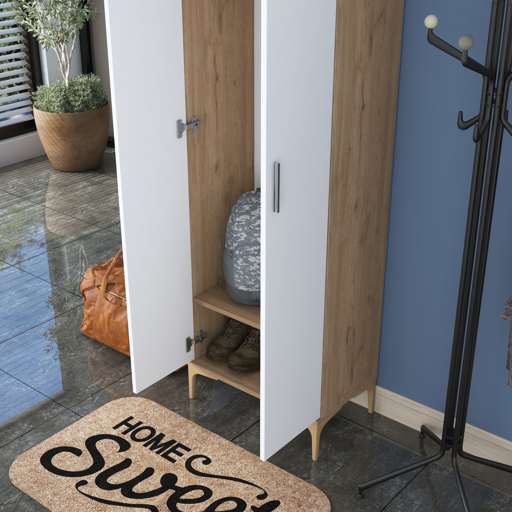 Aparador de hall – 60 x 37,5 x 198,6 cm – Nogueira e Branco – Aglomerado revestido a melamina