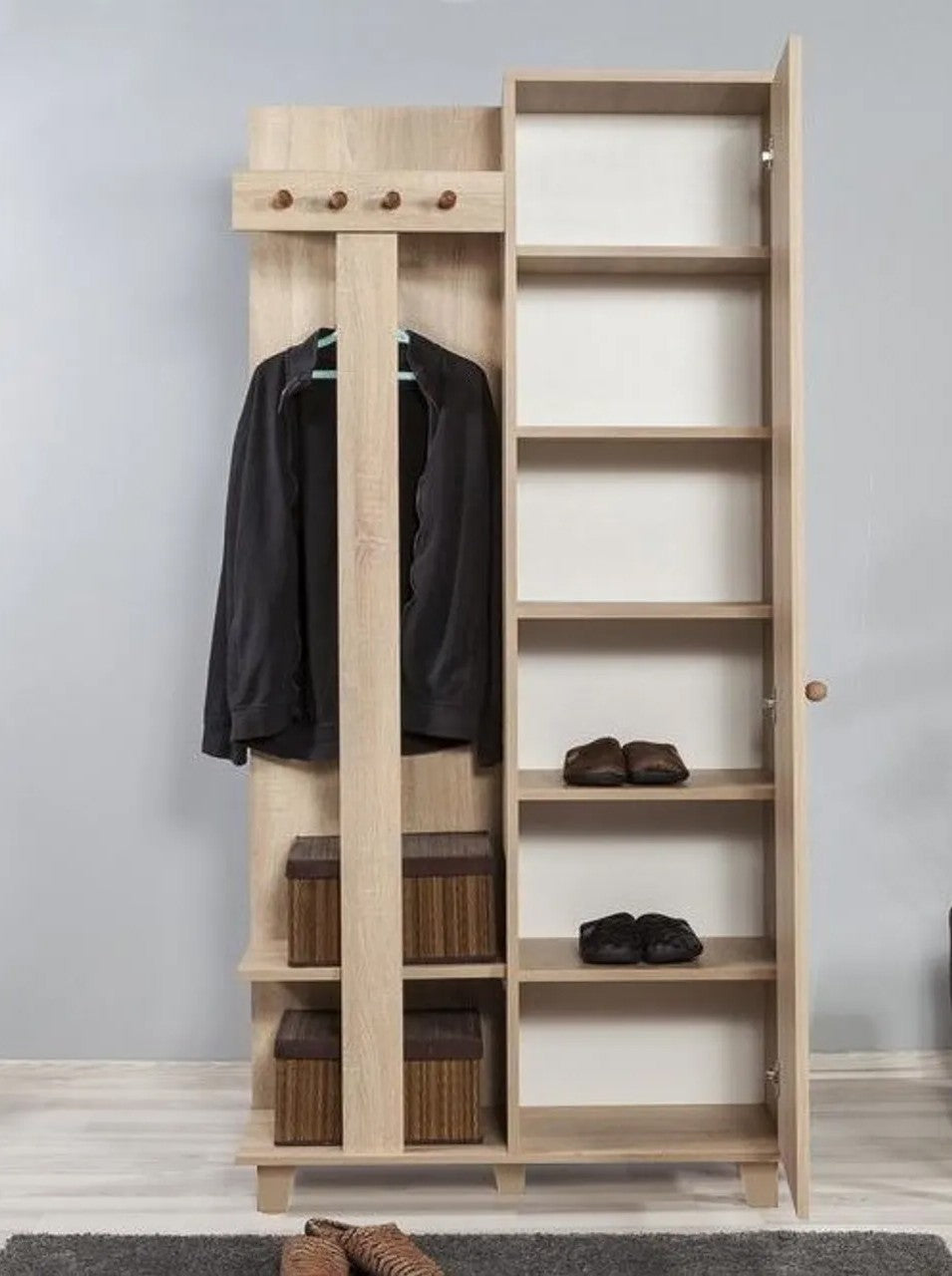 Feito de 100% de aglomerado revestido de melamina, este suporte de hall é construído para durar. A espessura de 18mm garante durabilidade, enquanto o revestimento UV o protege do desgaste diário. As pernas de plástico proporcionam estabilidade e suporte, tornando-o uma peça confiável para sua casa.