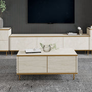 Mesa de Centro – 90 x 40 x 45 cm – Travertino e Dourado – Painel de Partículas Revestido em Melamina
