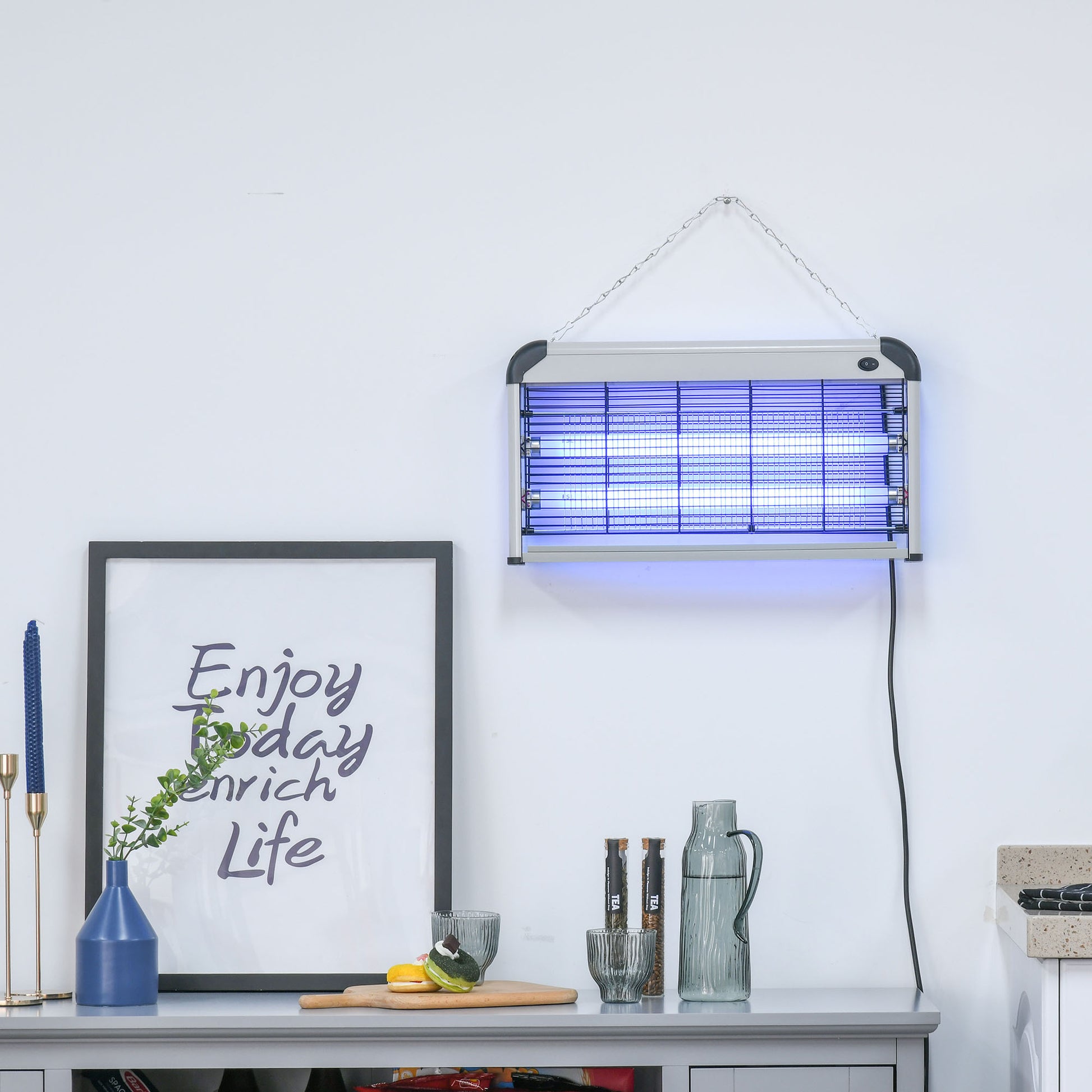 Proteja os seus espaços interiores e exteriores dos insetos com a Lâmpada Anti-Mosquitos Elétrica na cor prata. Com medidas totais de 48,5x8,5x26,5 cm, este mata mosquitos elétrico é altamente eficaz, cobrindo uma área de 60 m².