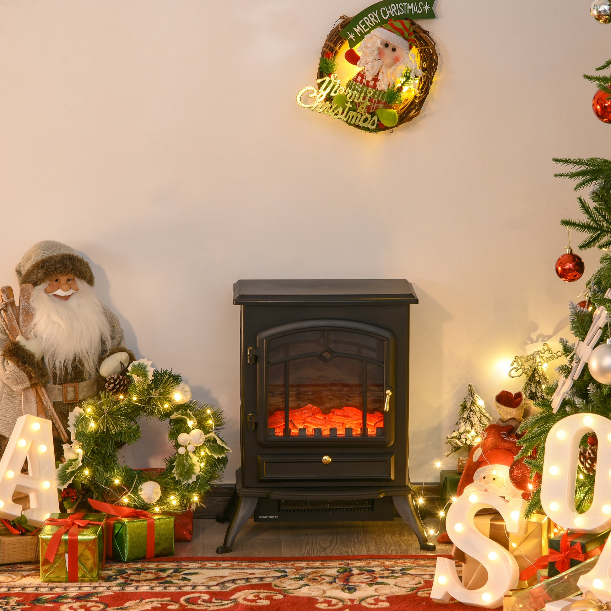 Lareira Elétrica Portátil 1000/2000W Efeito Chama Preto 45x28x54cm