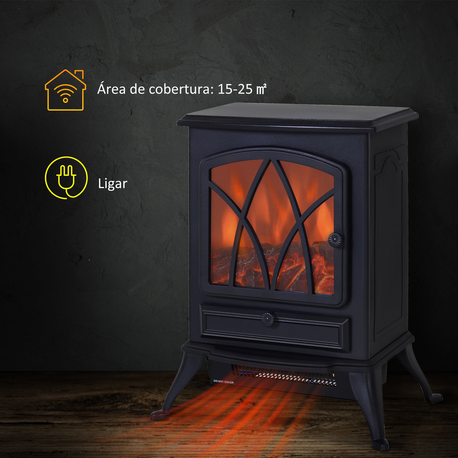 Lareira Elétrica Portátil com Efeito de Chama Realista 45x28,5x54cm - Preto