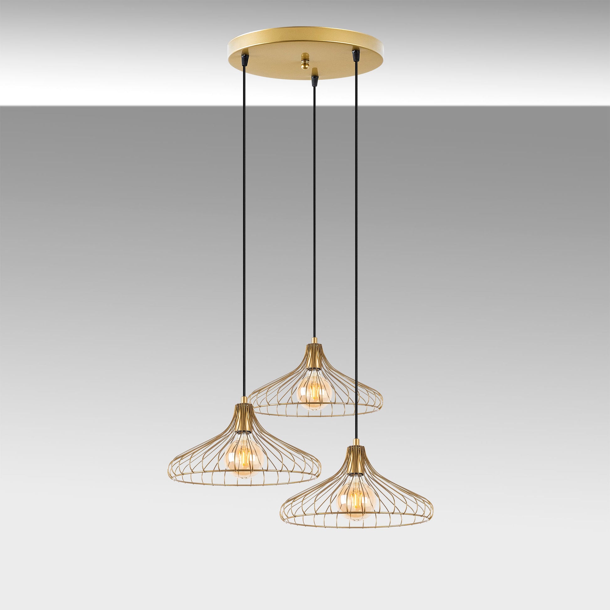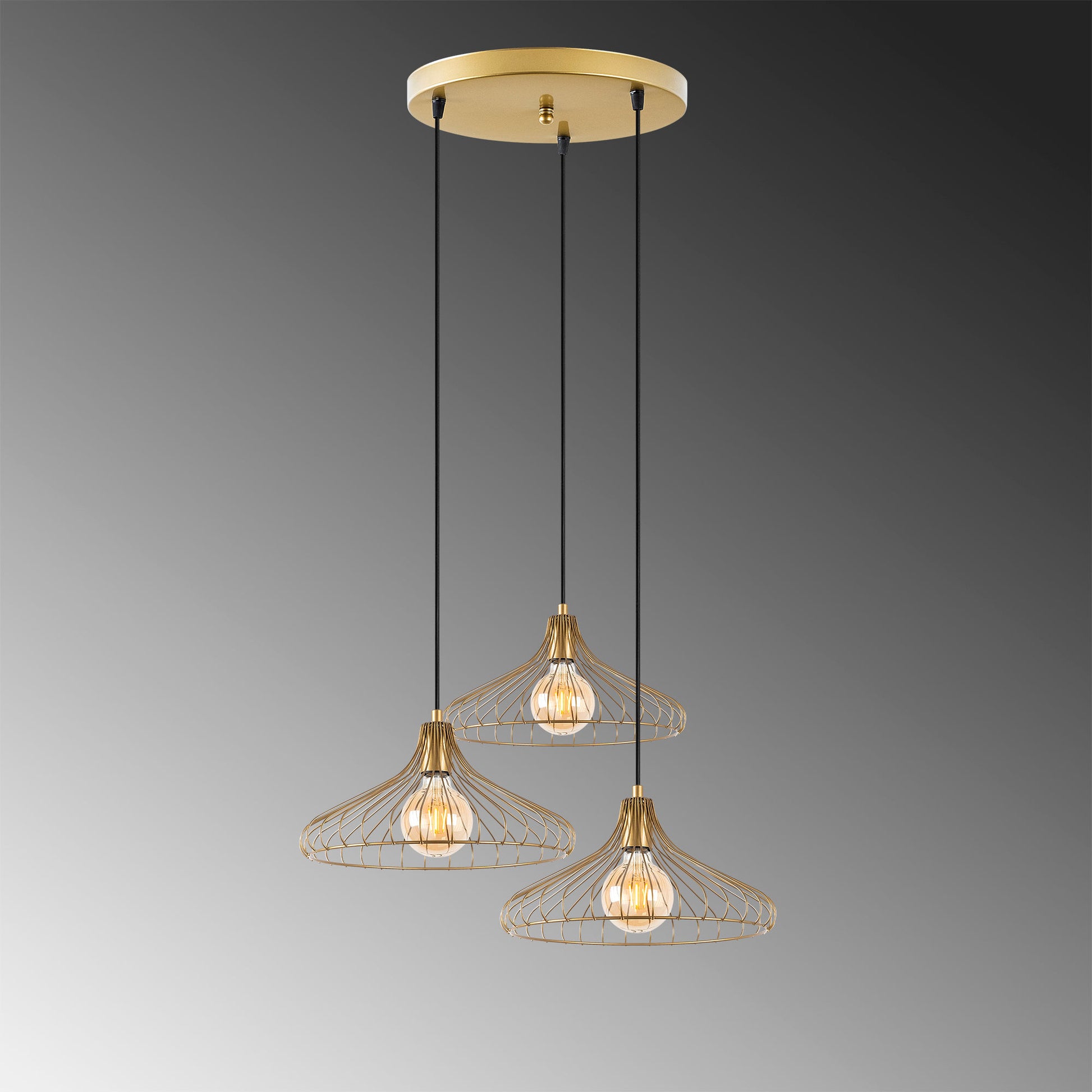 Candeeiro de Teto Dourado Elegante, Corpo em Metal, 65 x 64 x 120 cm | Altura Ajustável, 3 Soquetes E27, Design Moderno e Glamouroso | Perfeito para Salas de Estar e Jantar