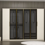 Guarda-roupa elegante – 274 cm x 210 cm x 52 cm – Branco, Dourado, Fumaça – MDF revestido em melamina