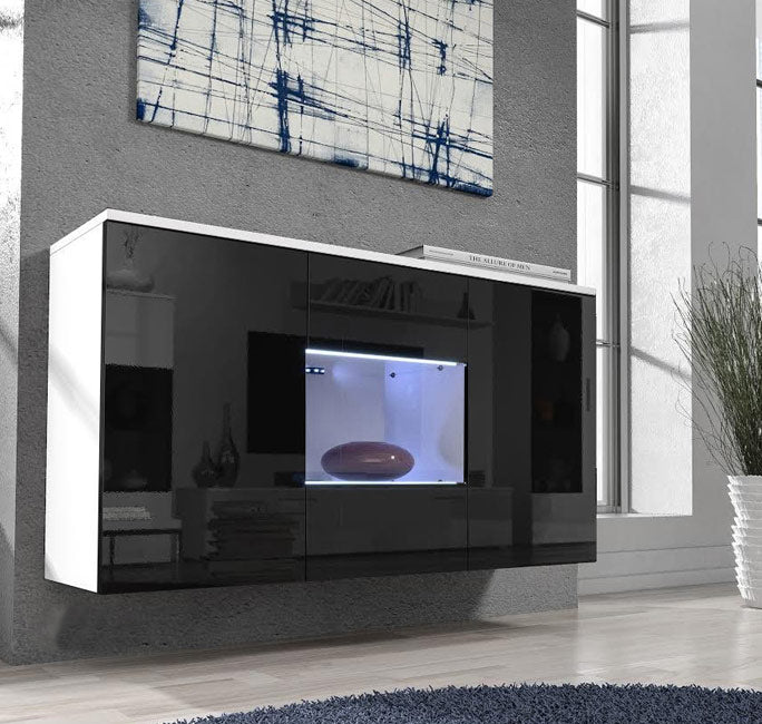 Aparador Pendente – 120 cm x 70 cm x 40 cm – Branco e Preto – Melamina e MDF