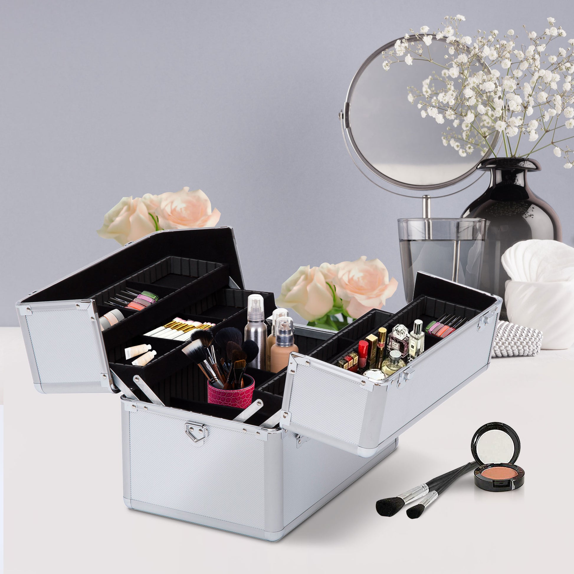 Mala de Maquilhagem de 3 Níveis Prata 36,5x24x29cm