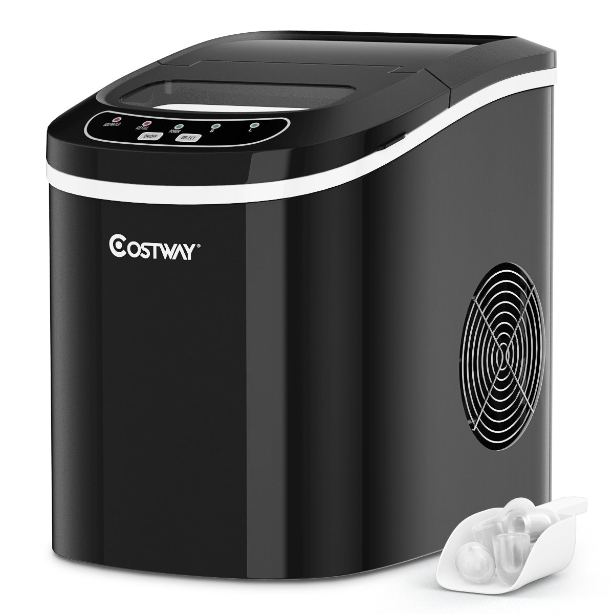 Inclui colher para extração de gelo, fácil de manusear, janela de visualização transparente, produção de até 12kg de gelo em 24 horas, cesto de armazenamento de gelo para cerca de 0,7kg, desligamento automático quando o tanque está cheio e prático produtor de gelo, perfeito para reuniões familiares e cocktails.